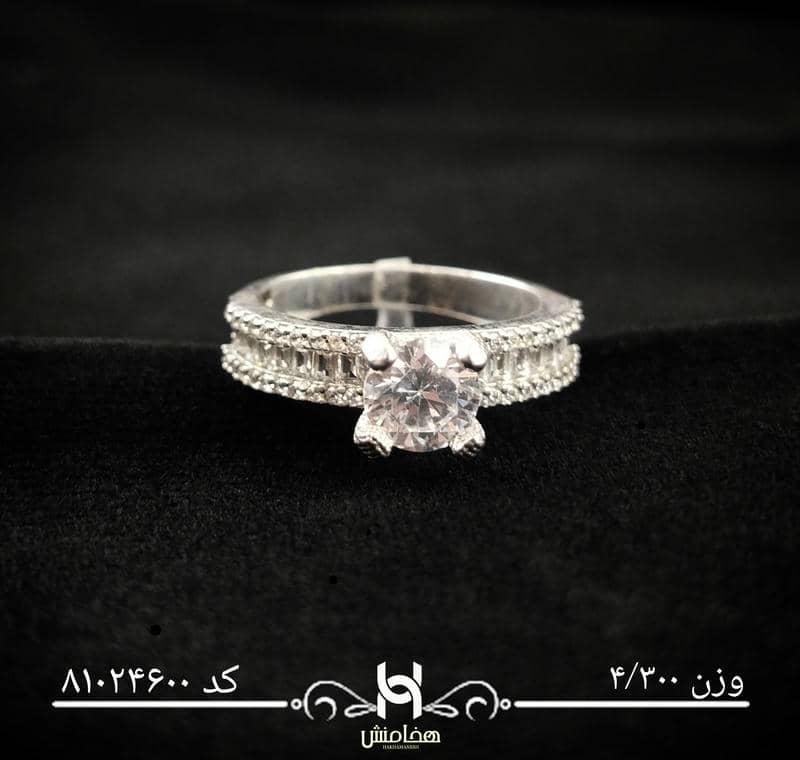در ساخت این انگشتر از نگینهای ظریف و درخشان با چیدمان دقیق استفاده شده که نور را بهزیبایی بازتاب میدهند و جلوهای مشابه جواهرات سفید به آن میبخشند. ظاهر درخشان و طراحی هماهنگ آن باعث شده این مدل انتخابی ایدهآل برای مراسم رسمی، مهمانیها و استفاده روزمره باشد.