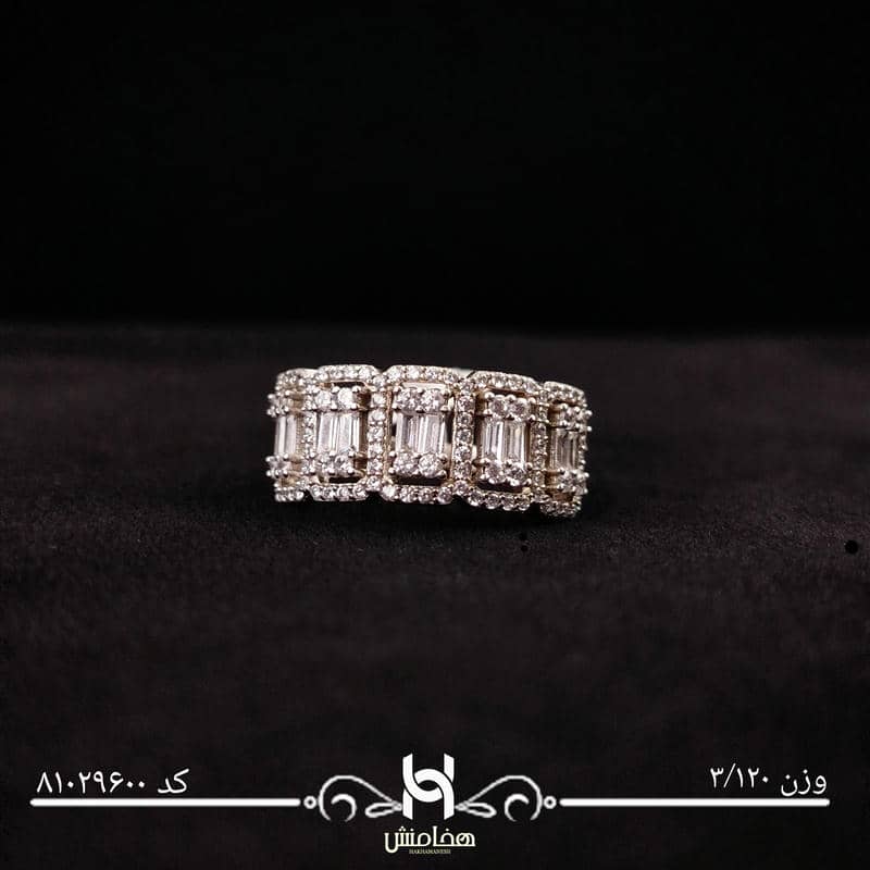 در ساخت این انگشتر از نگینهای ظریف و درخشان با چیدمان دقیق استفاده شده که نور را بهزیبایی بازتاب میدهند و جلوهای مشابه جواهرات سفید به آن میبخشند. ظاهر درخشان و طراحی هماهنگ آن باعث شده این مدل انتخابی ایدهآل برای مراسم رسمی، مهمانیها و استفاده روزمره باشد.