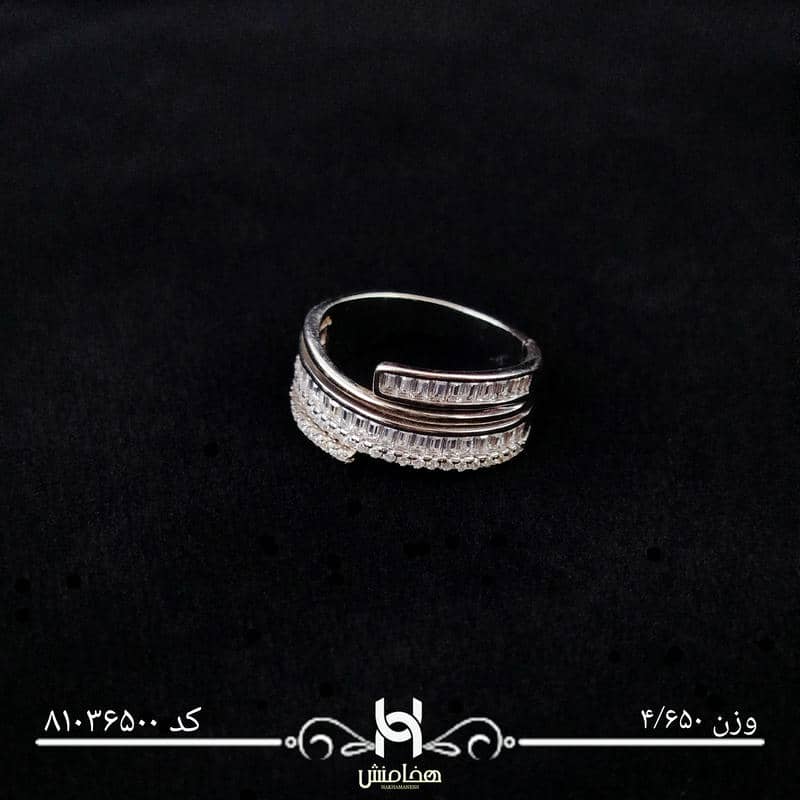 در مرکز حلقه، نگینهای شفاف با درخششی کریستالی جلوهای خاص به انگشتر بخشیدهاند و نگینهای ریز چیدهشده در اطراف، نور را به زیبایی بازتاب میدهند. این مدل انتخابی ایدهآل برای بانوانی است که به دنبال زیوری ظریف، درخشان و مناسب برای استفاده روزانه یا مناسبتهای خاص هستند.