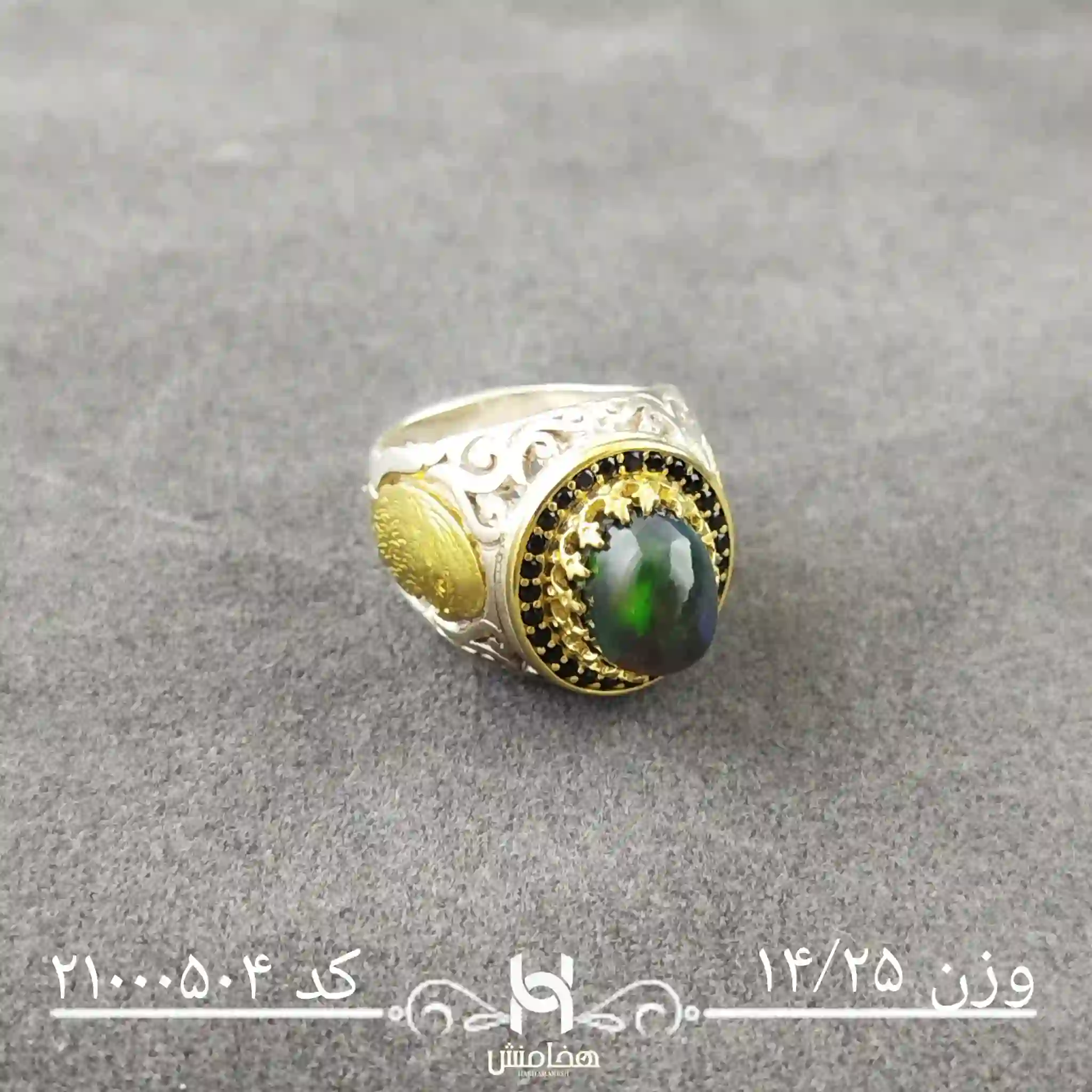 - کیفیت نگین: اوپال سیاه با ضمانت شرکت هخامنش