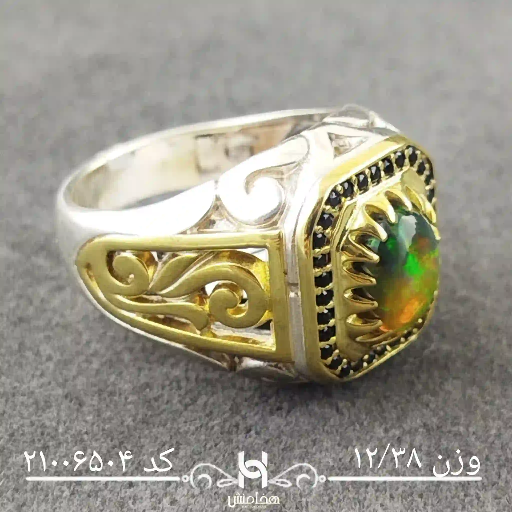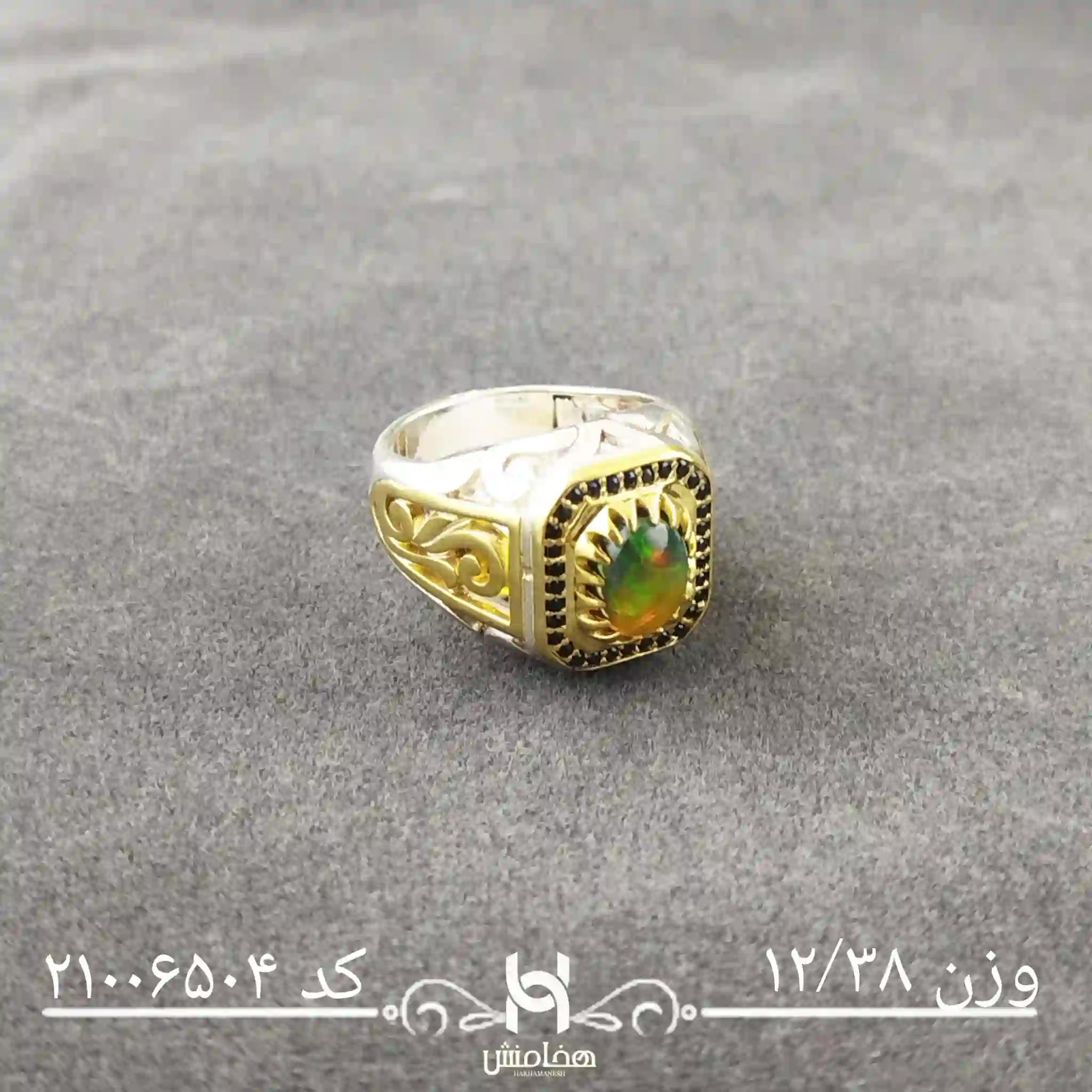 - کیفیت نگین: اوپال سیاه با ضمانت شرکت هخامنش