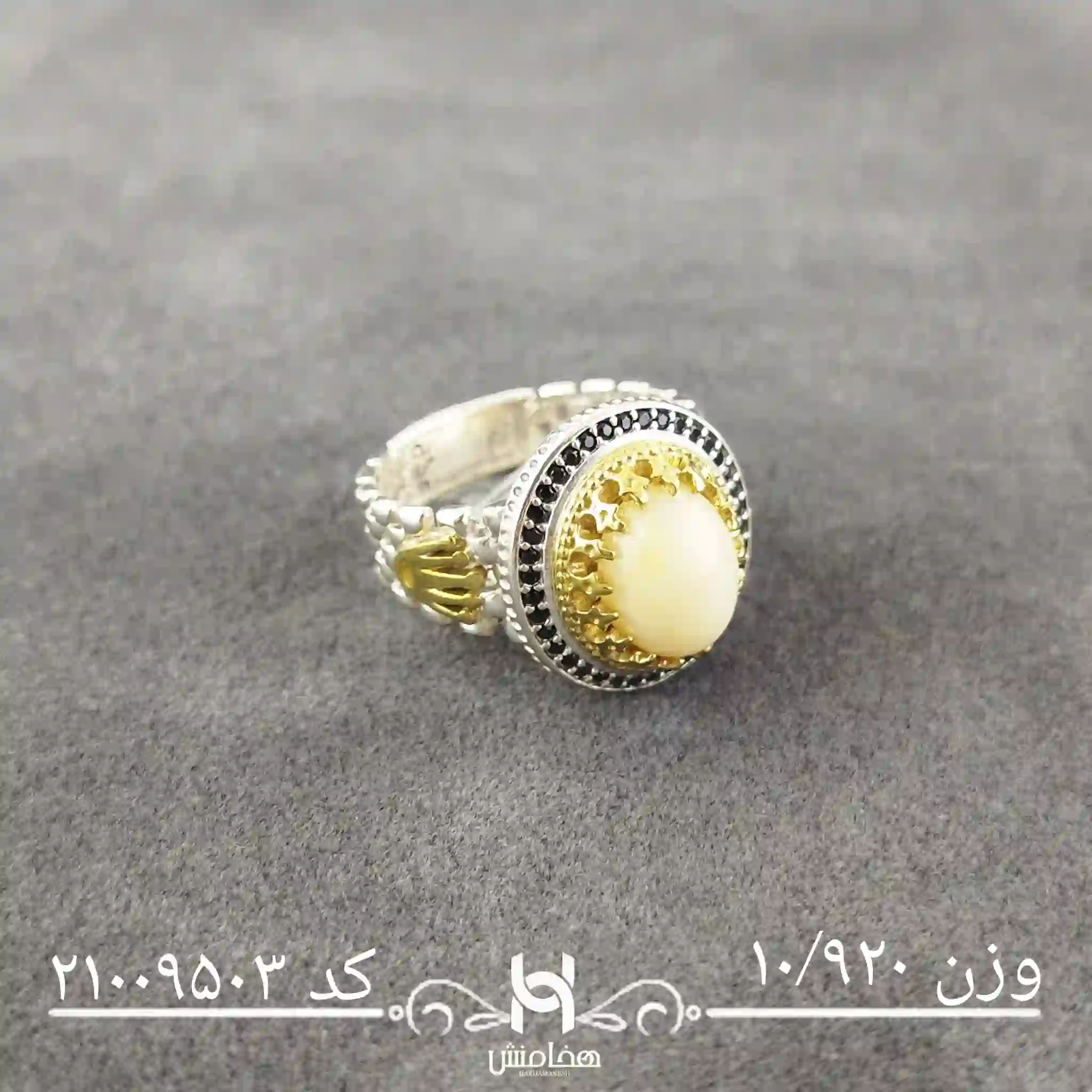 انگشتر نقره مردانه اوپال سفيد رويال دورنگ کد 21009503