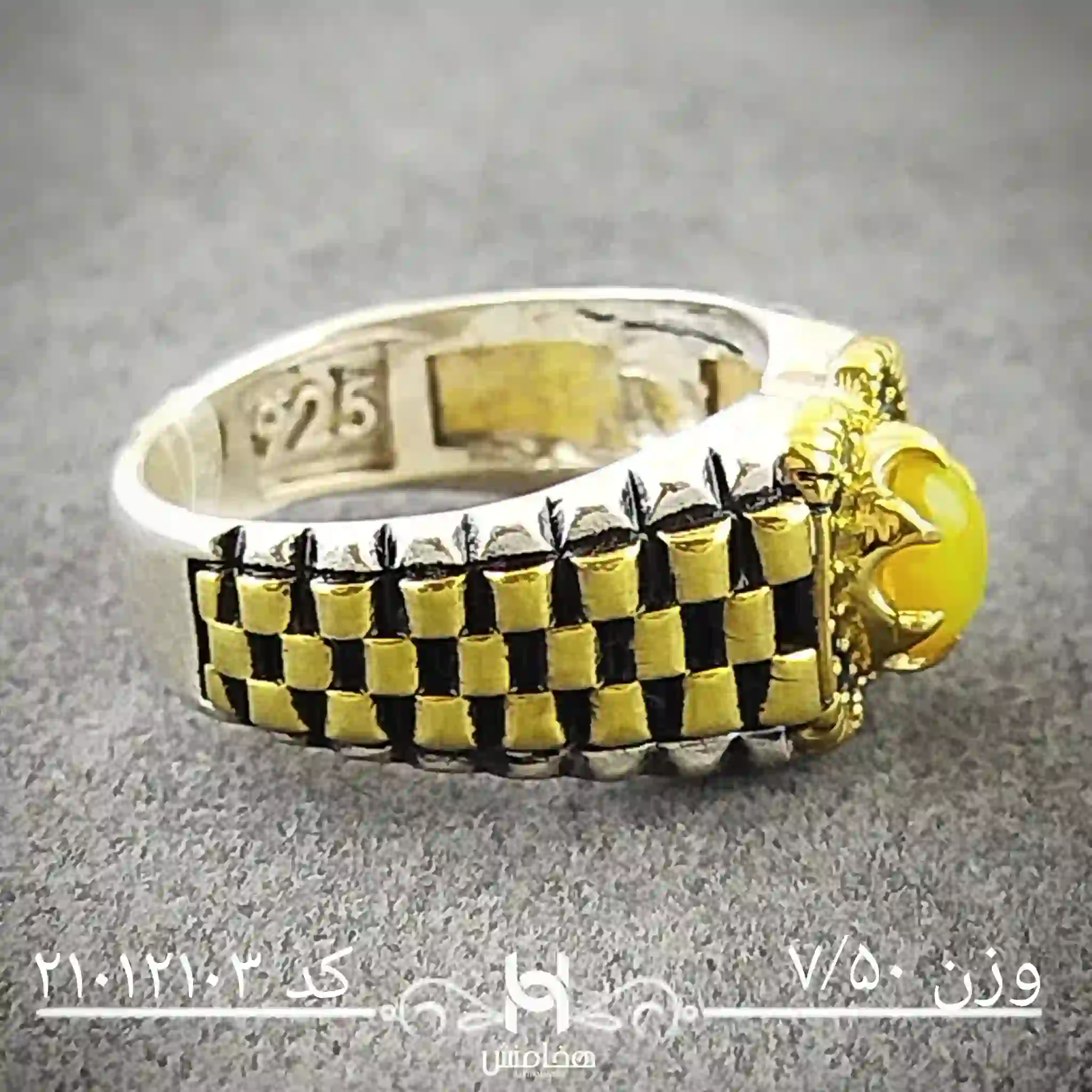 انگشتر نقره مردانه اوپال سفيد رويال دورنگ کد 21012103