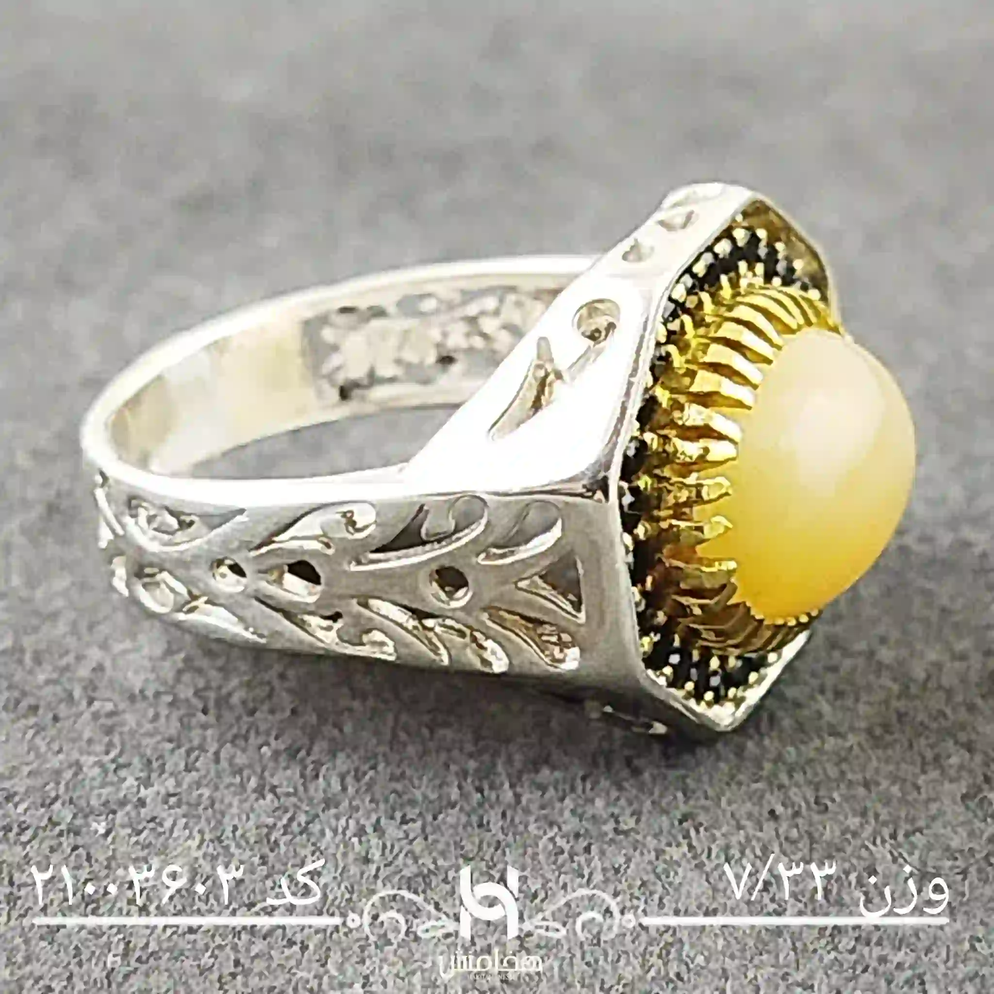 انگشتر نقره مردانه اوپال سفید دورنگ کد 21003603