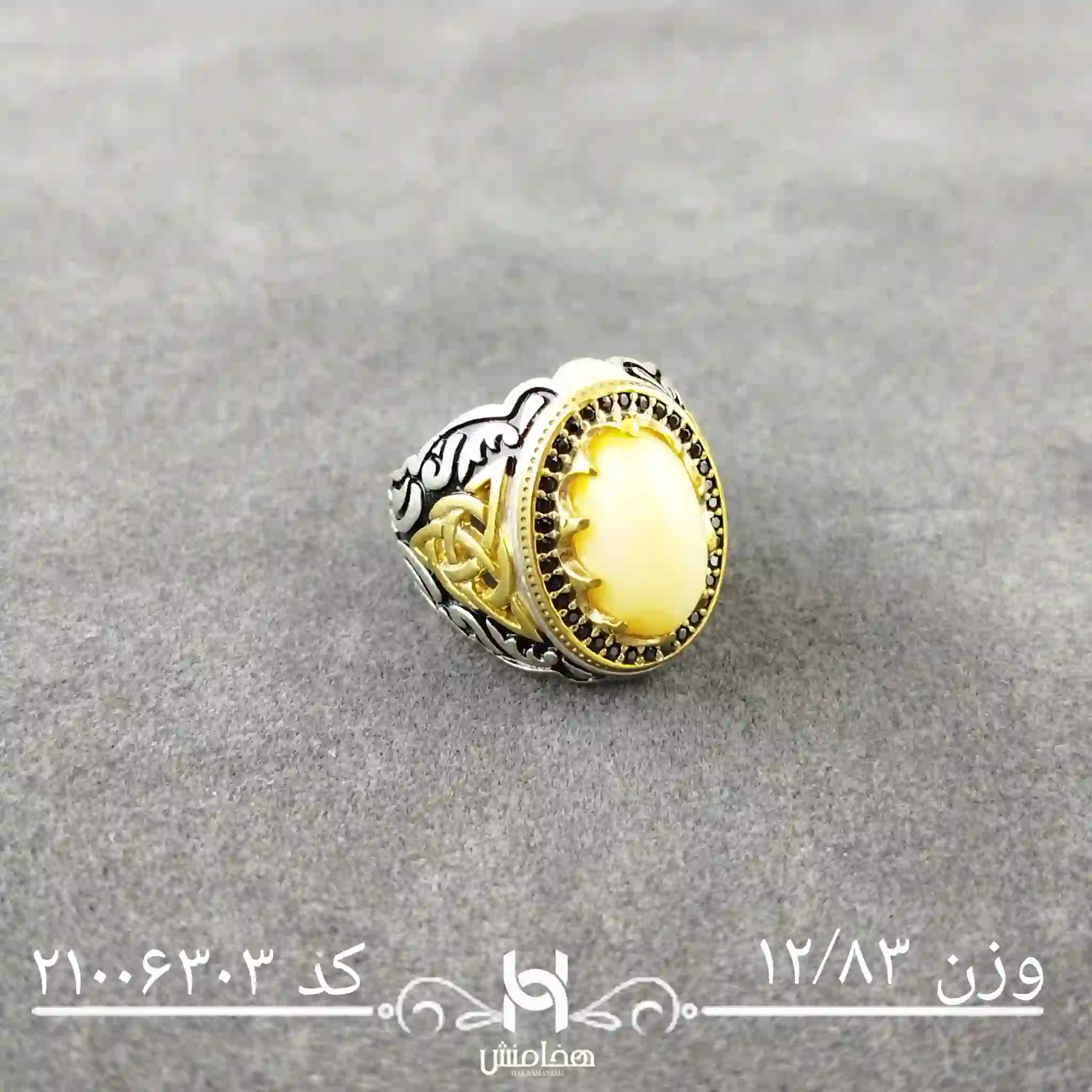 انگشتر نقره مردانه اوپال سفید دورنگ کد 21006303