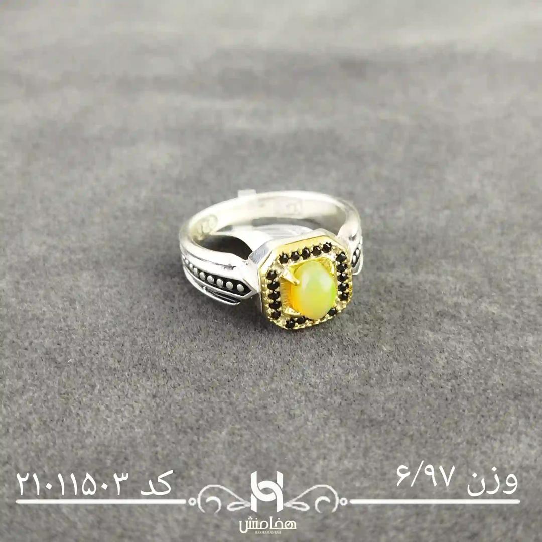 انگشتر نقره مردانه اوپال سفید دورنگ کد 21011503