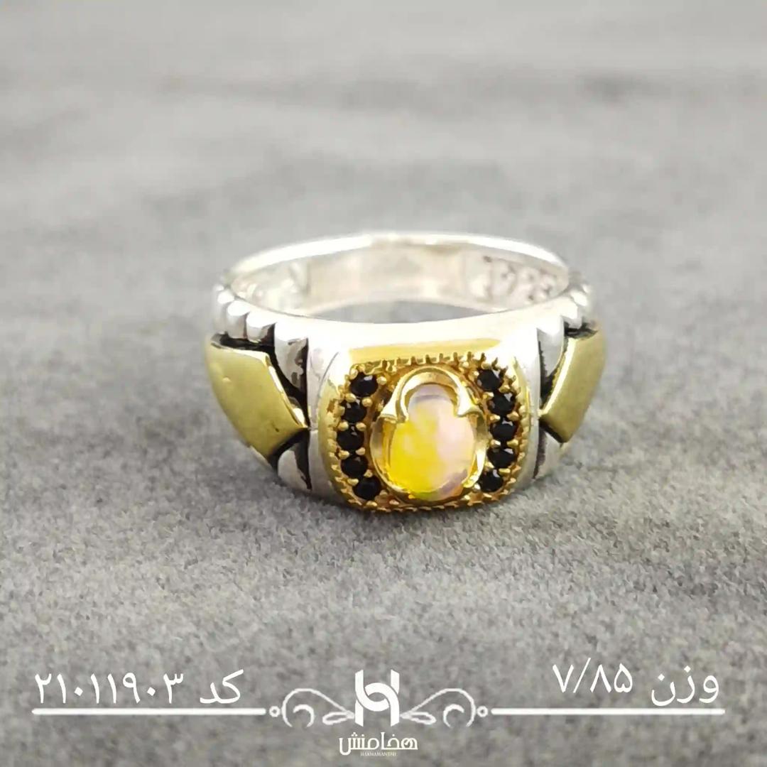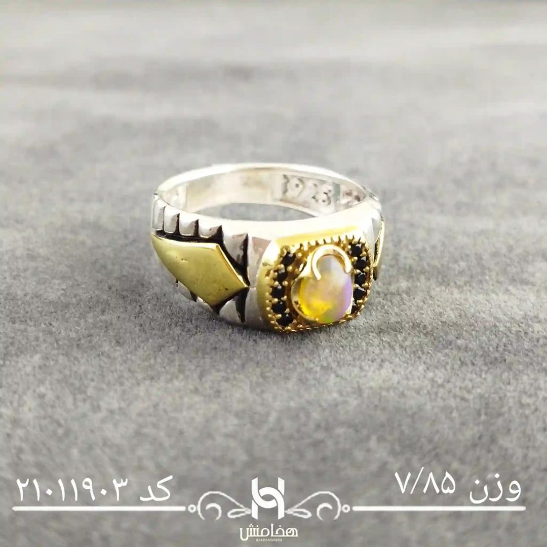 انگشتر نقره مردانه اوپال سفید دورنگ کد 21011903