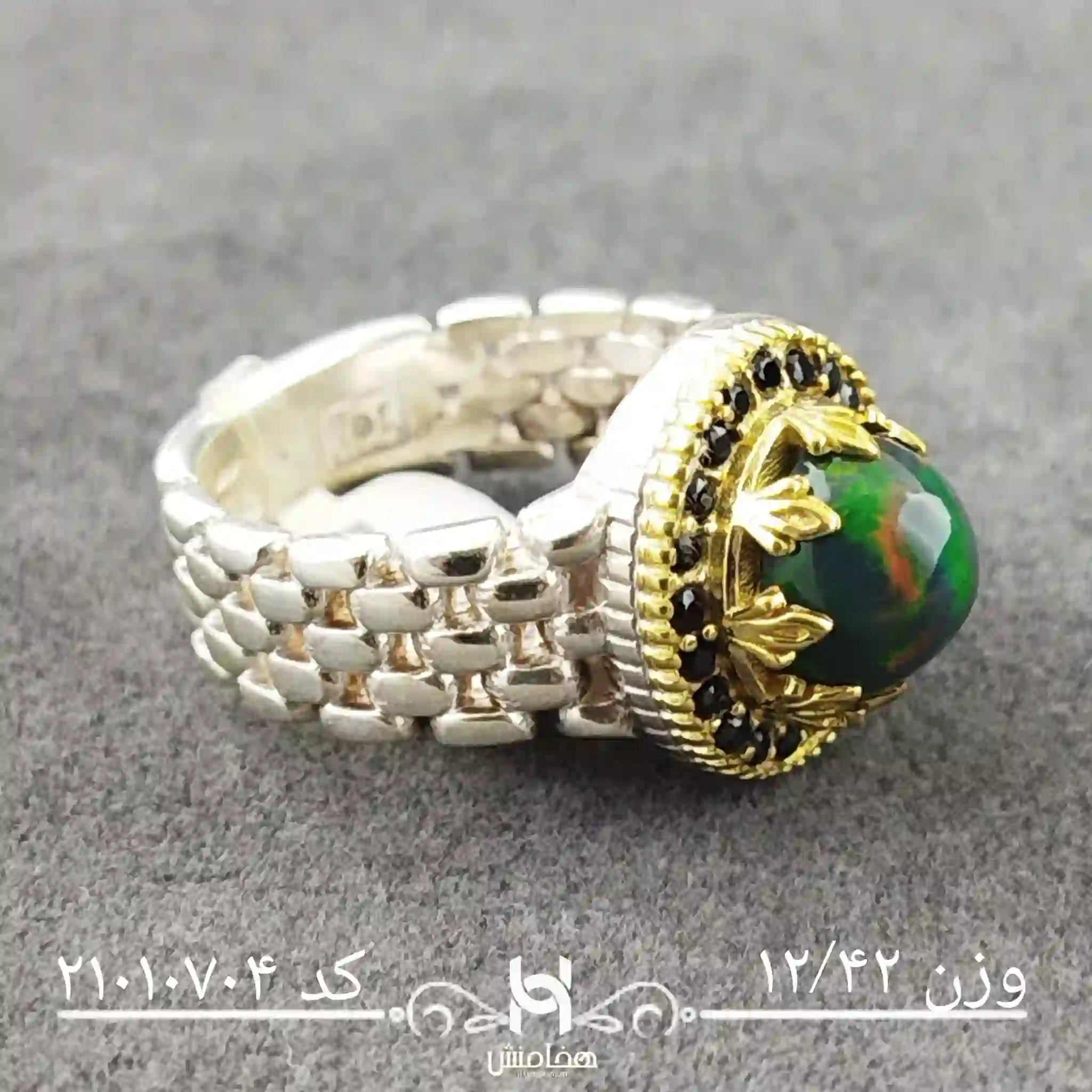 انگشتر نقره مردانه اوپال سیاه رويال دورنگ کد 21010704