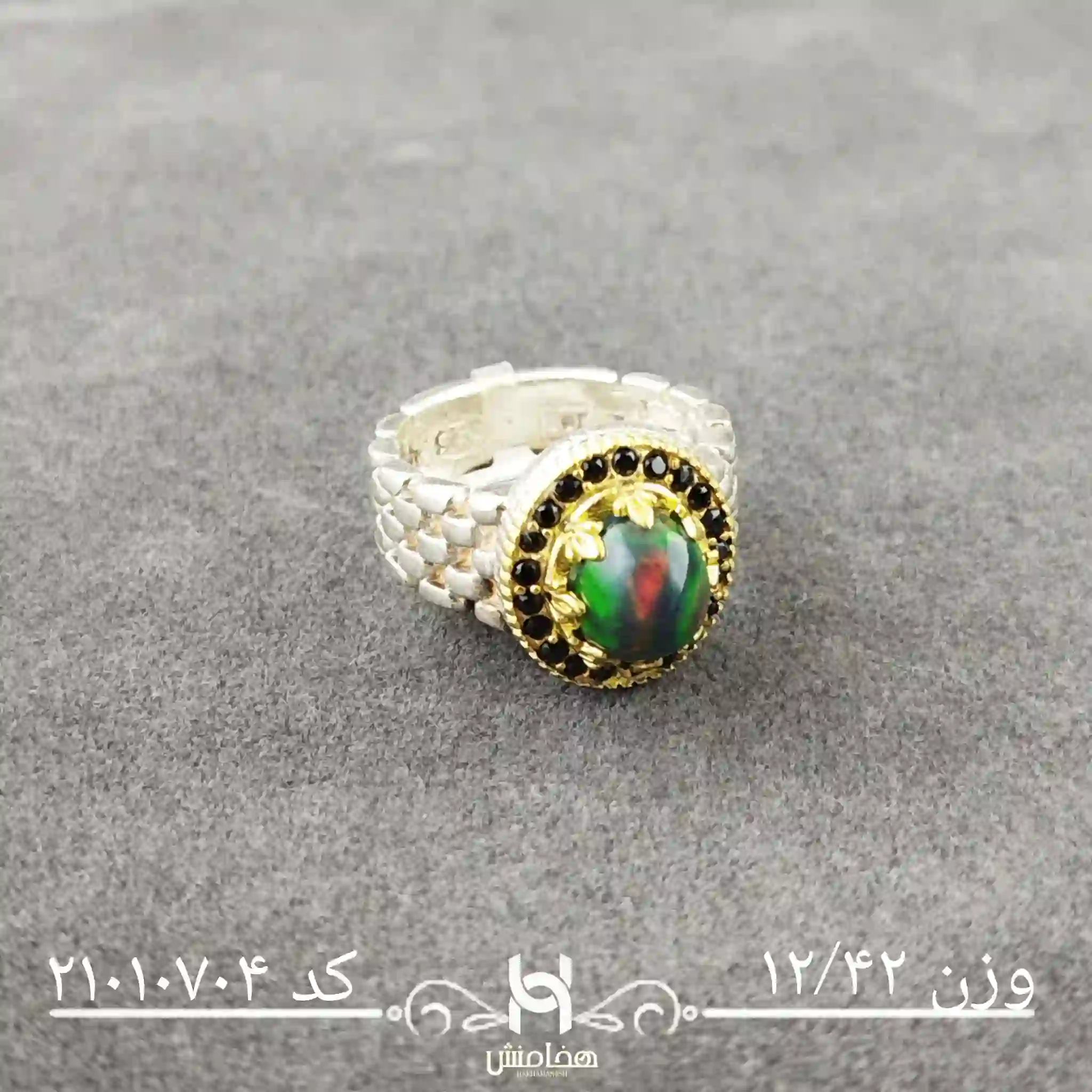 - کیفیت نگین: اوپال سیاه با ضمانت شرکت هخامنش