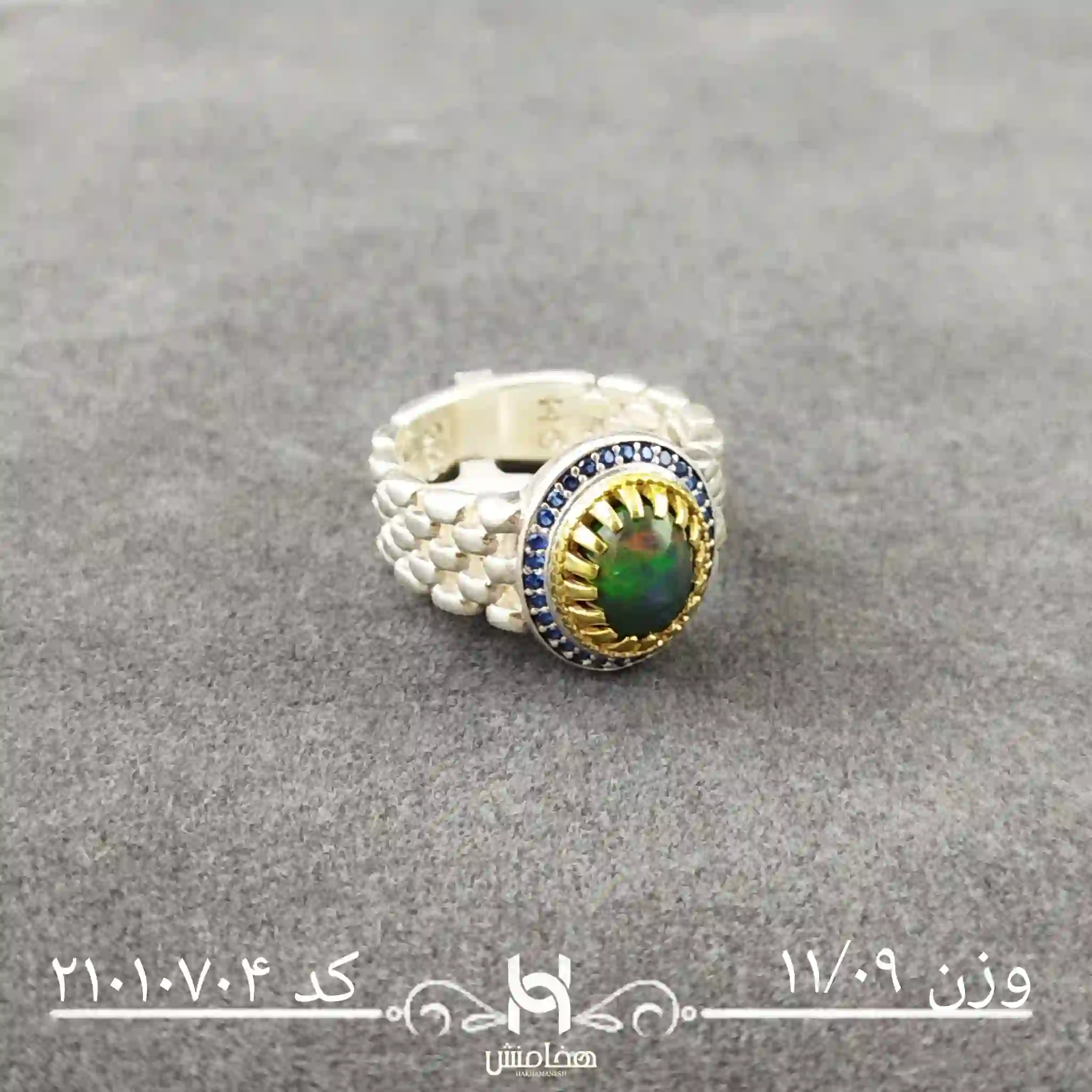 - کیفیت نگین: اوپال سیاه با ضمانت شرکت هخامنش