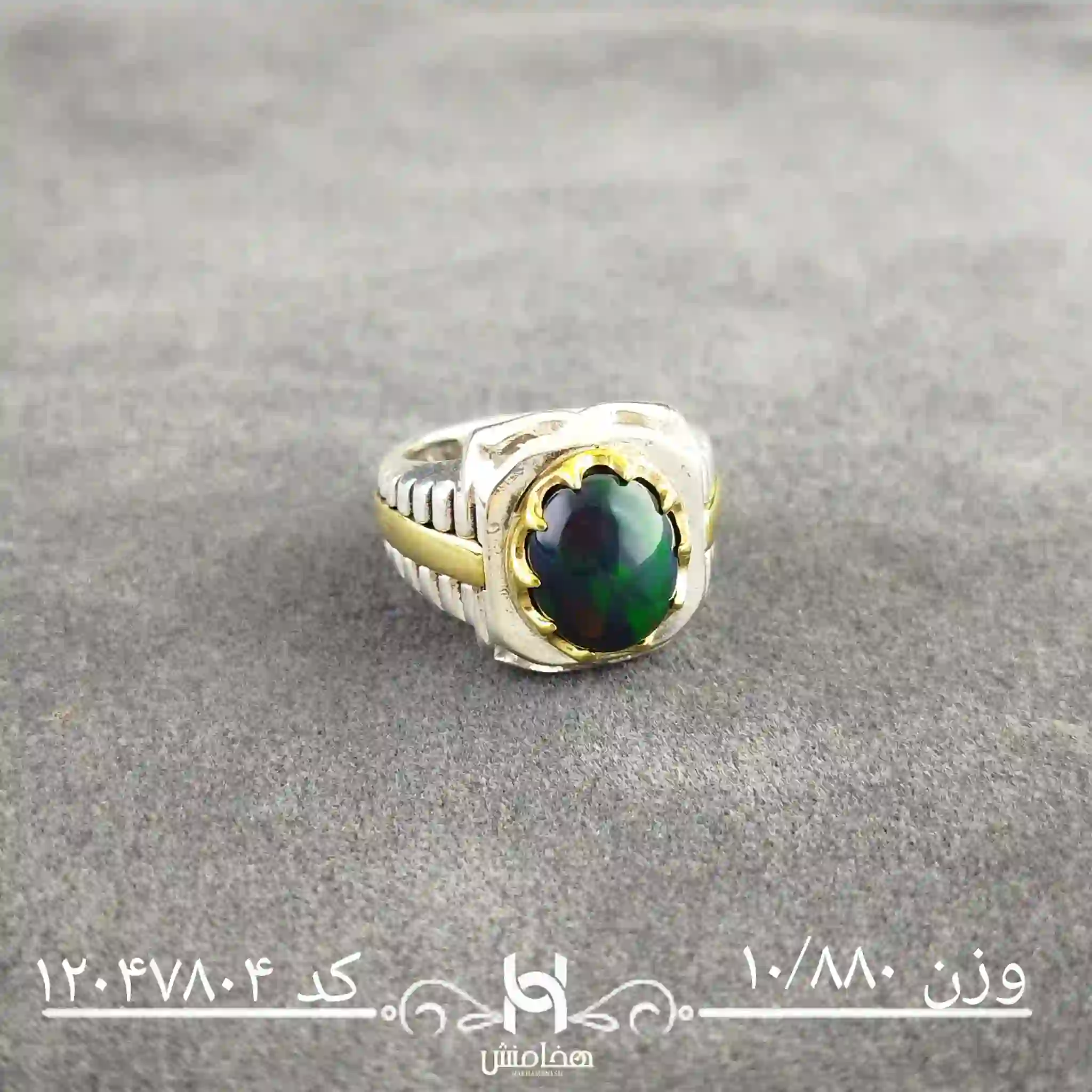 انگشتر نقره مردانه اوپال مشکی دورنگ با نقره عیار 925 تولید شرکت هخامنش با سنگ طبیعی اوپال زیبا و چشم نواز بوده و توجه هر بیننده ی را جلب میکند.