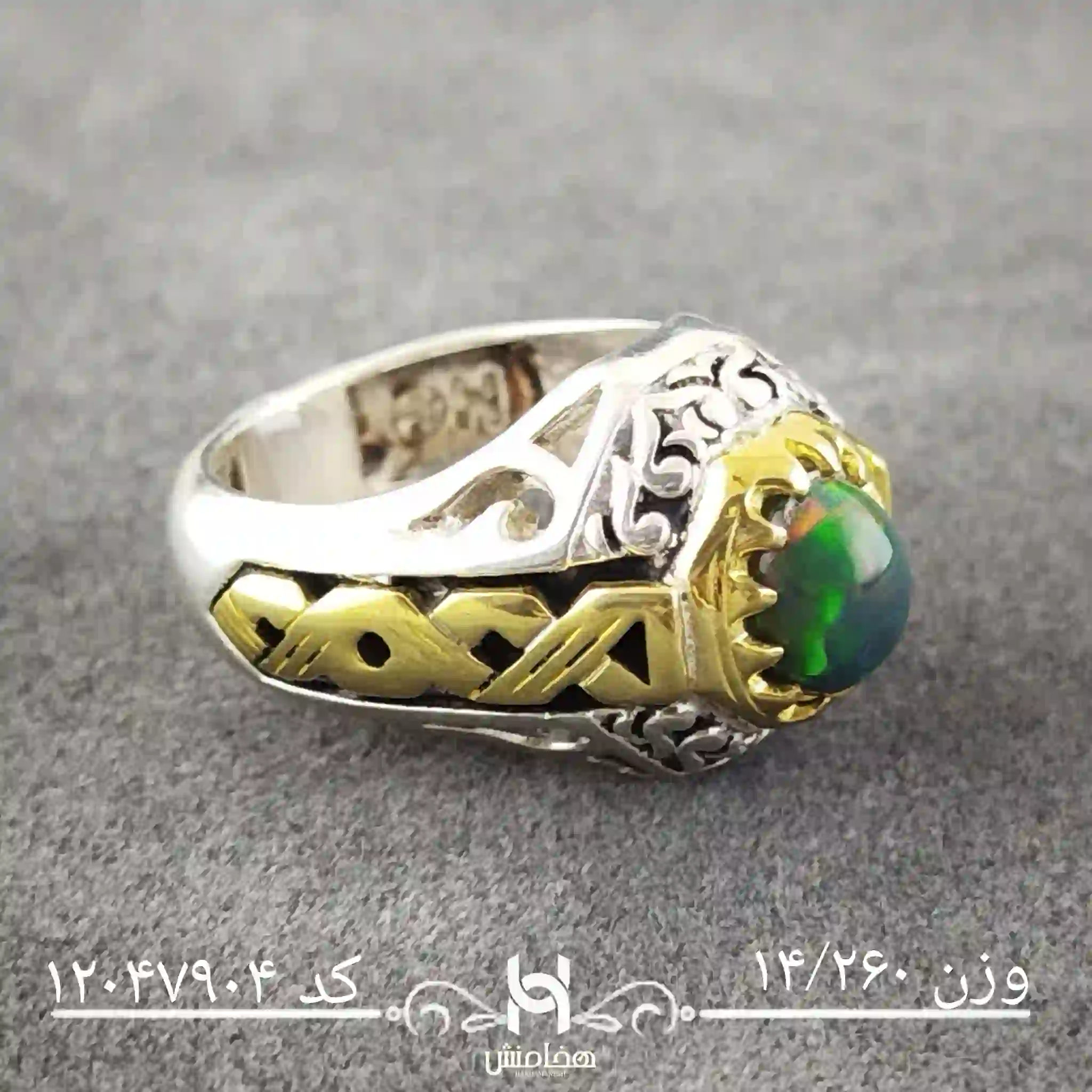 انگشتر نقره مردانه اوپال مشکی دورنگ کد 12047904