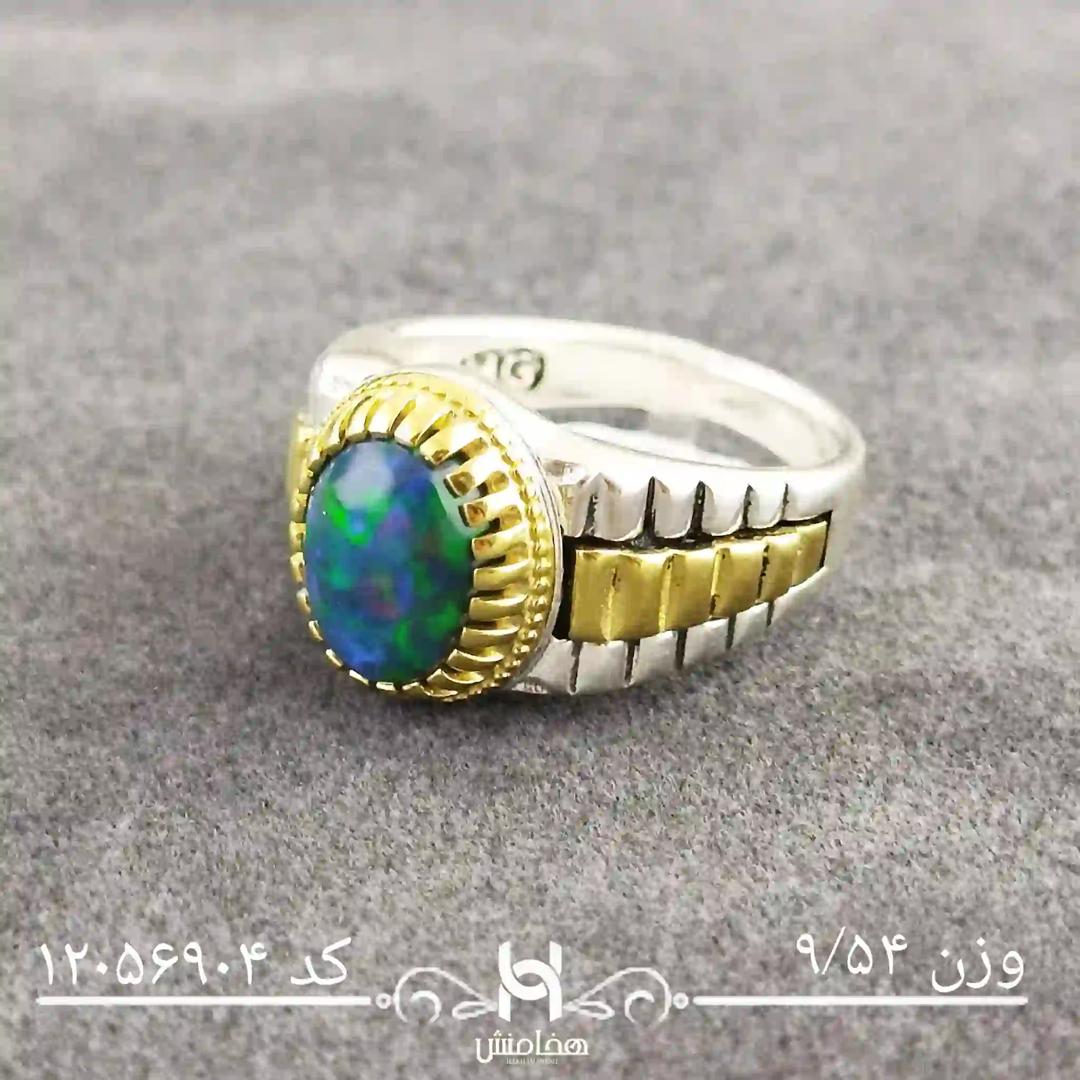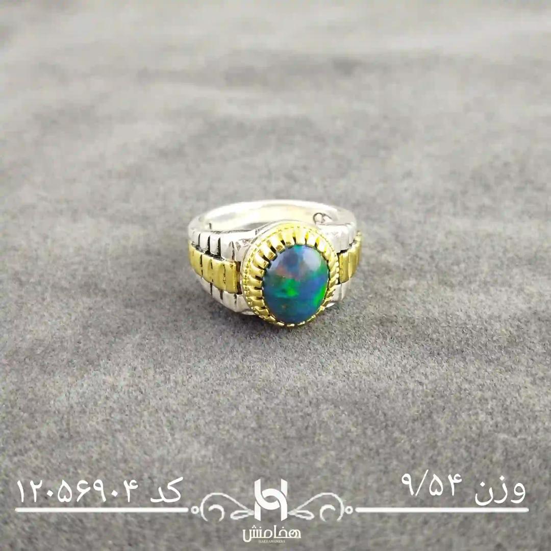 انگشتر نقره مردانه اوپال مشکی دورنگ با نقره عیار 925 تولید شرکت هخامنش با سنگ طبیعی اوپال زیبا و چشم نواز بوده و توجه هر بیننده ی را جلب میکند.