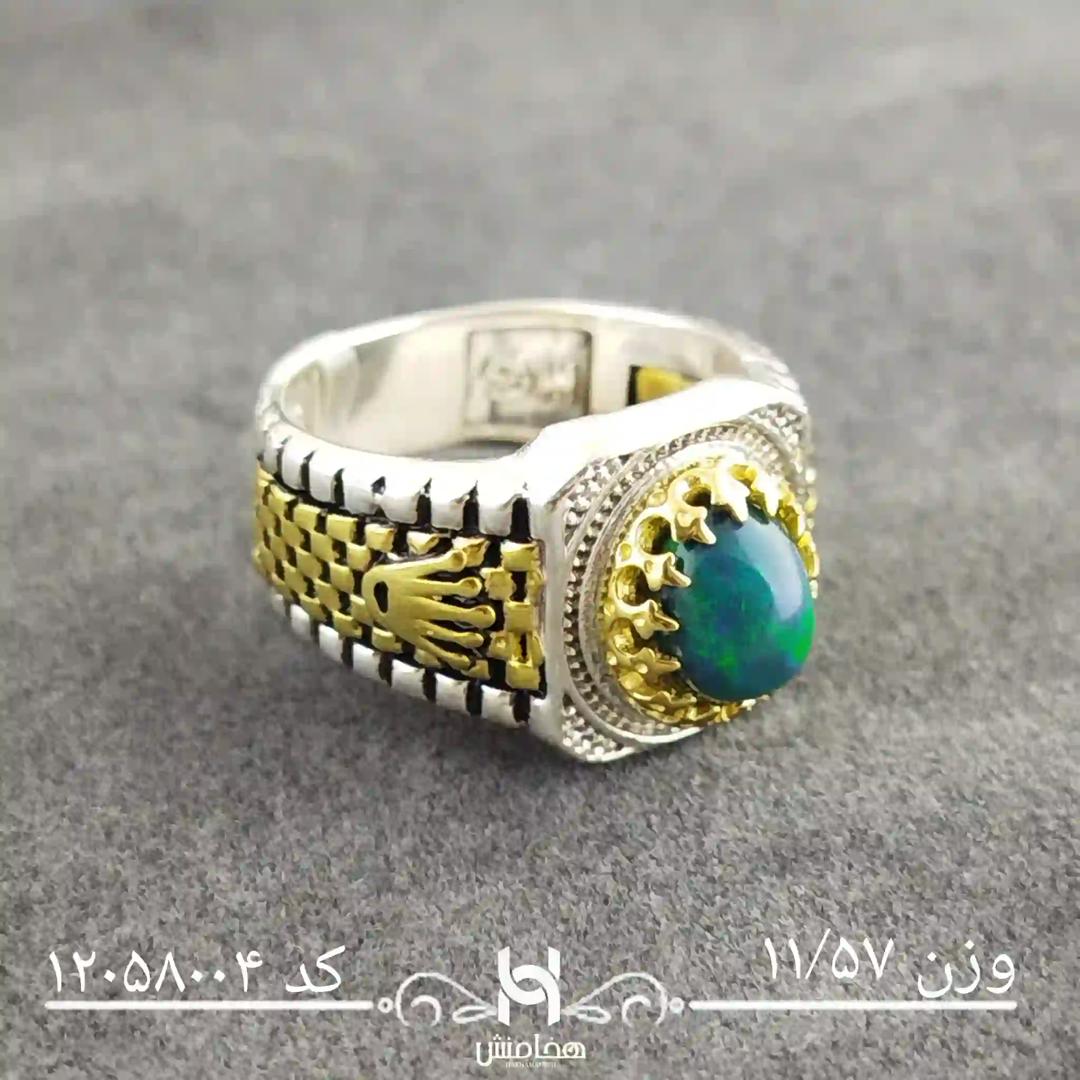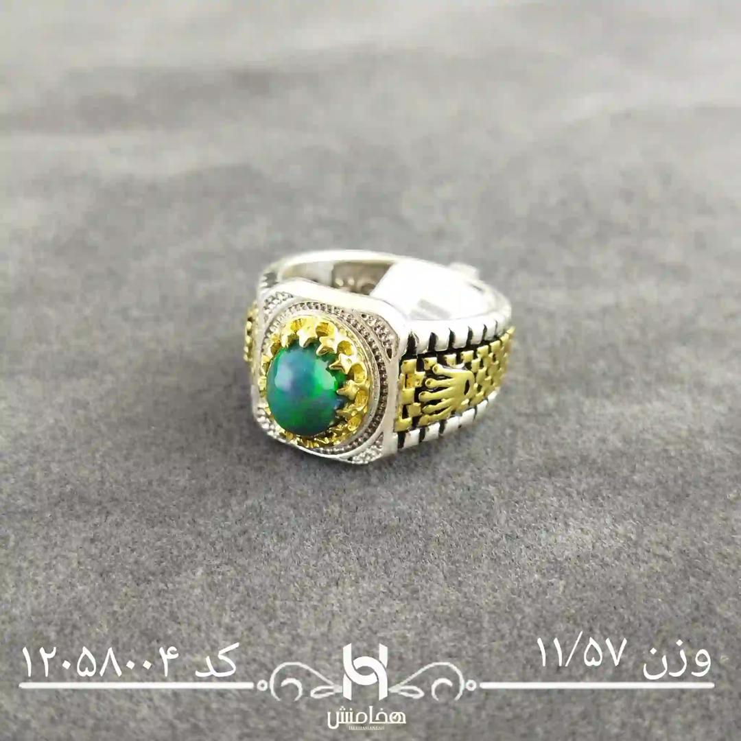 انگشتر نقره مردانه اوپال مشکی دورنگ با نقره عیار 925 تولید شرکت هخامنش با سنگ طبیعی اوپال زیبا و چشم نواز بوده و توجه هر بیننده ی را جلب میکند.