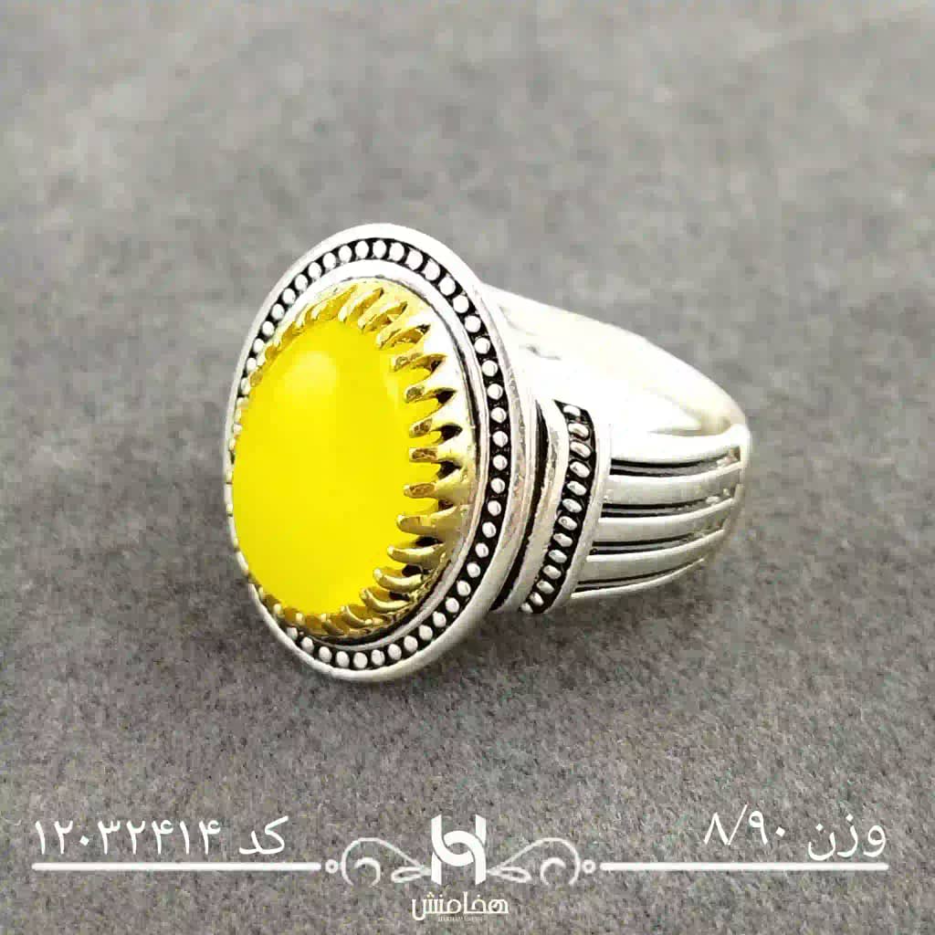 انگشتر نقره مردانه دورنگ عقیق زرد کد 12032414