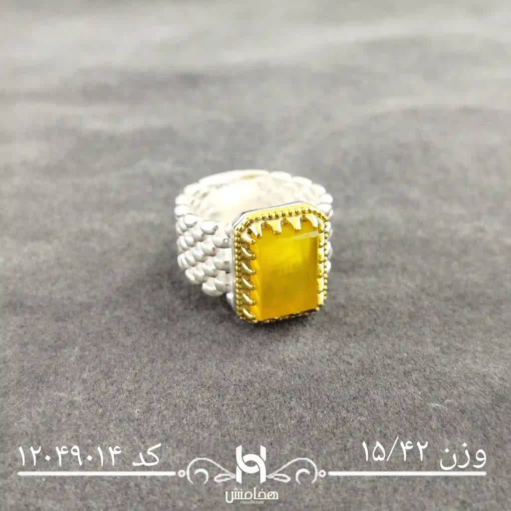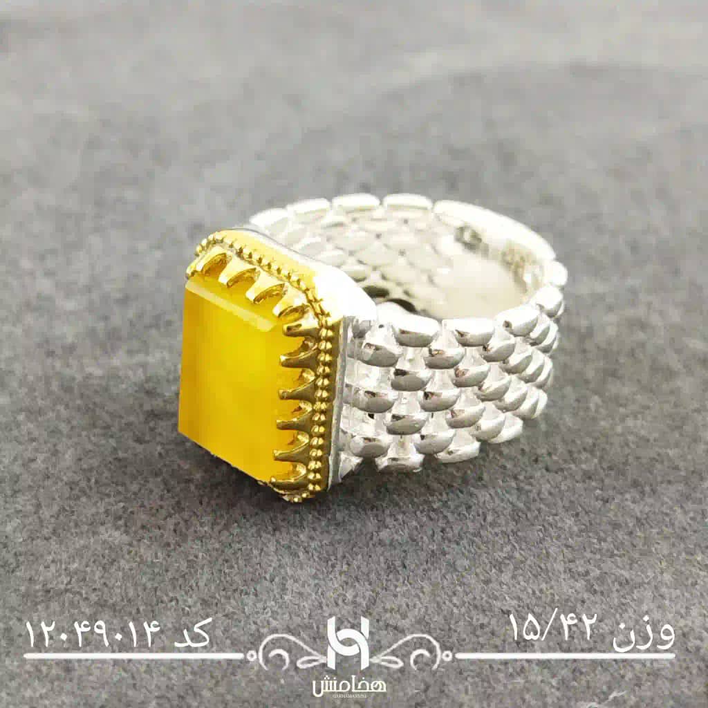 انگشتر نقره مردانه دورنگ عقیق زرد کد 12049014