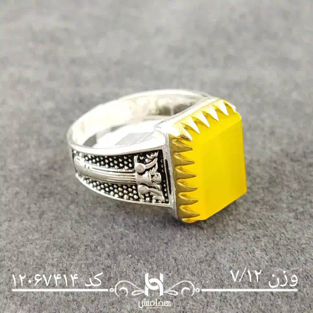 انگشتر نقره مردانه دورنگ عقیق زرد کد 12067414