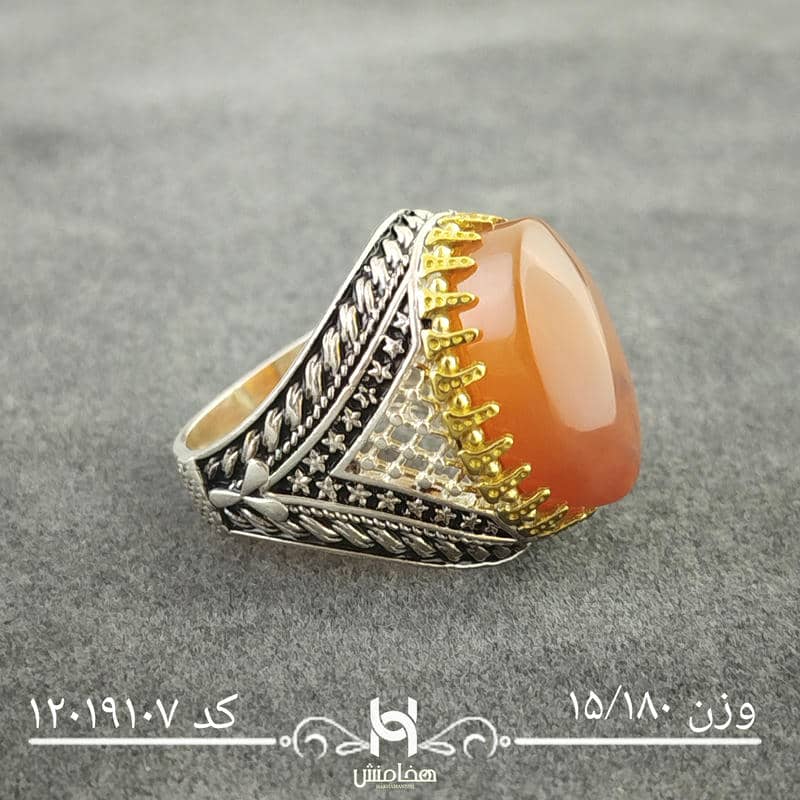 انگشتر نقره مردانه دورنگ عقیق قرمز با سنگ طبیعی اصل و نقره عیار استاندارد 925 تولید شرکت هخامنش میباشد.