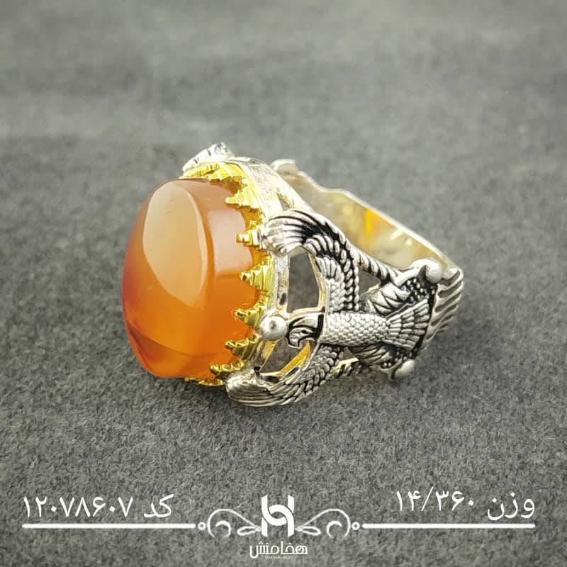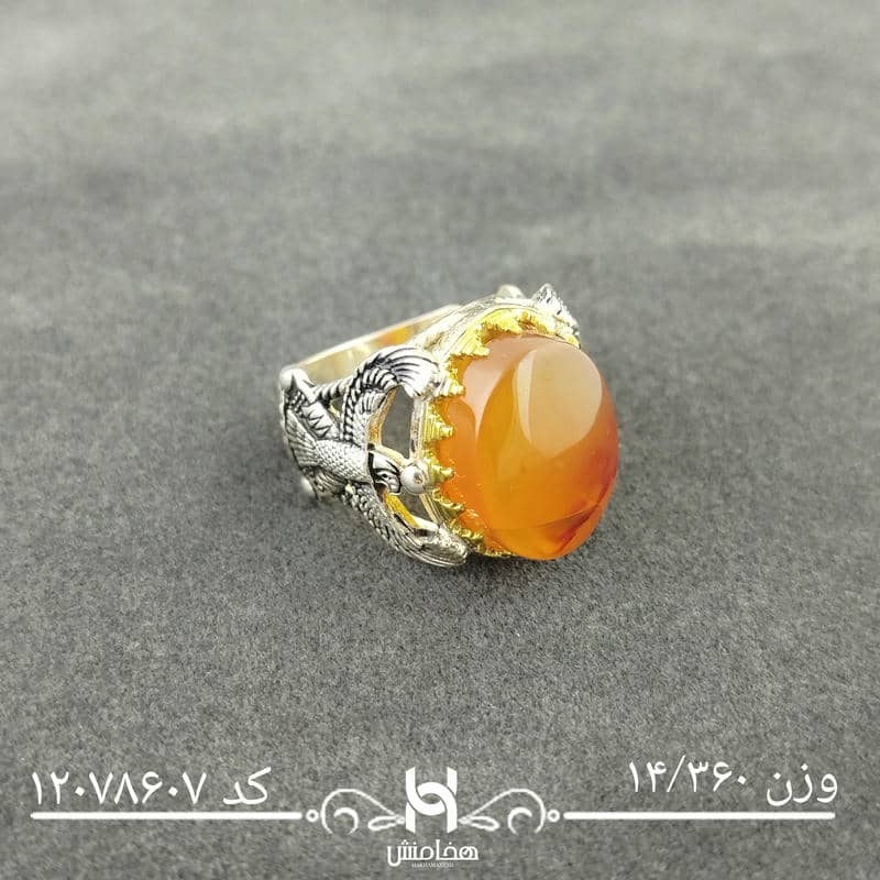 انگشتر نقره مردانه دورنگ عقیق قرمز با سنگ طبیعی اصل و نقره عیار استاندارد 925 تولید شرکت هخامنش میباشد.