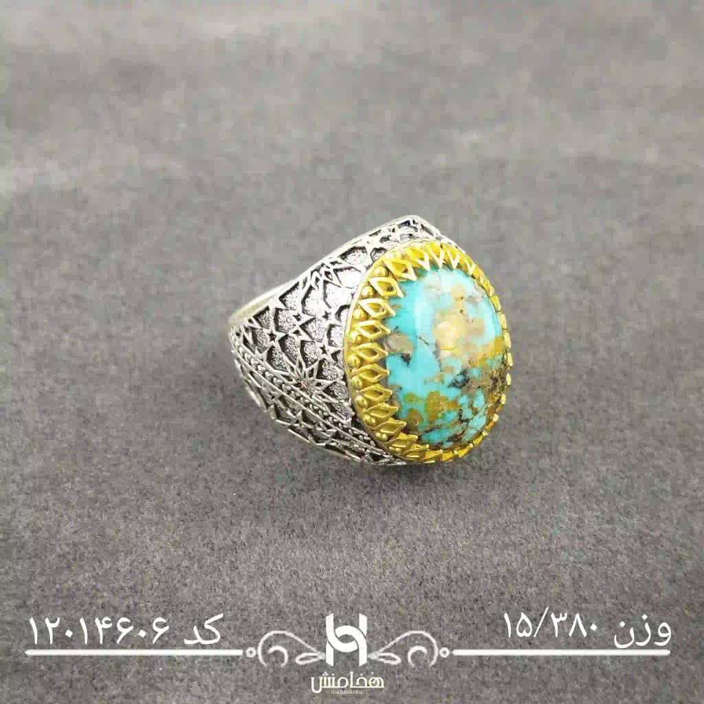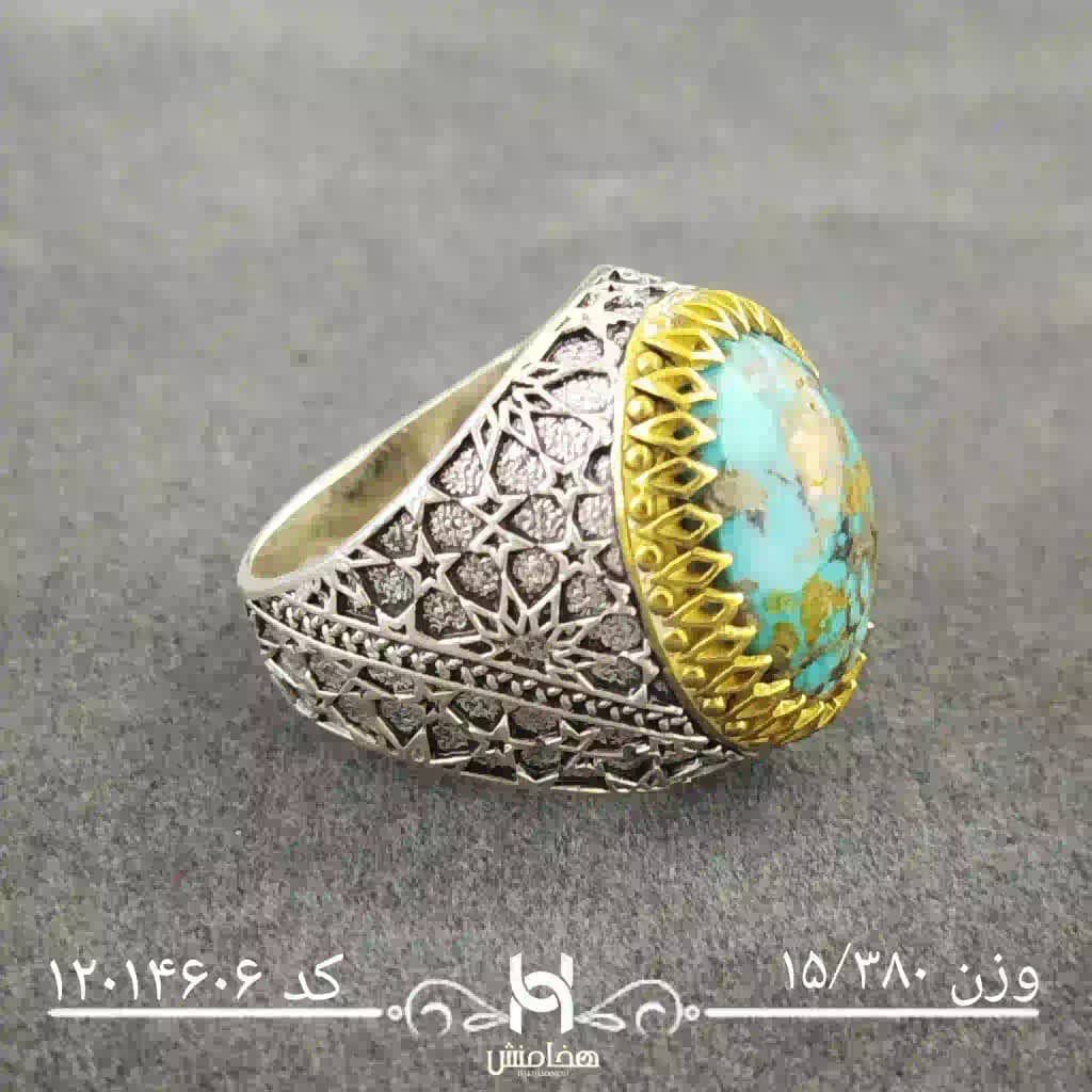 انگشتر نقره مردانه دورنگ فیروزه کد 12014606