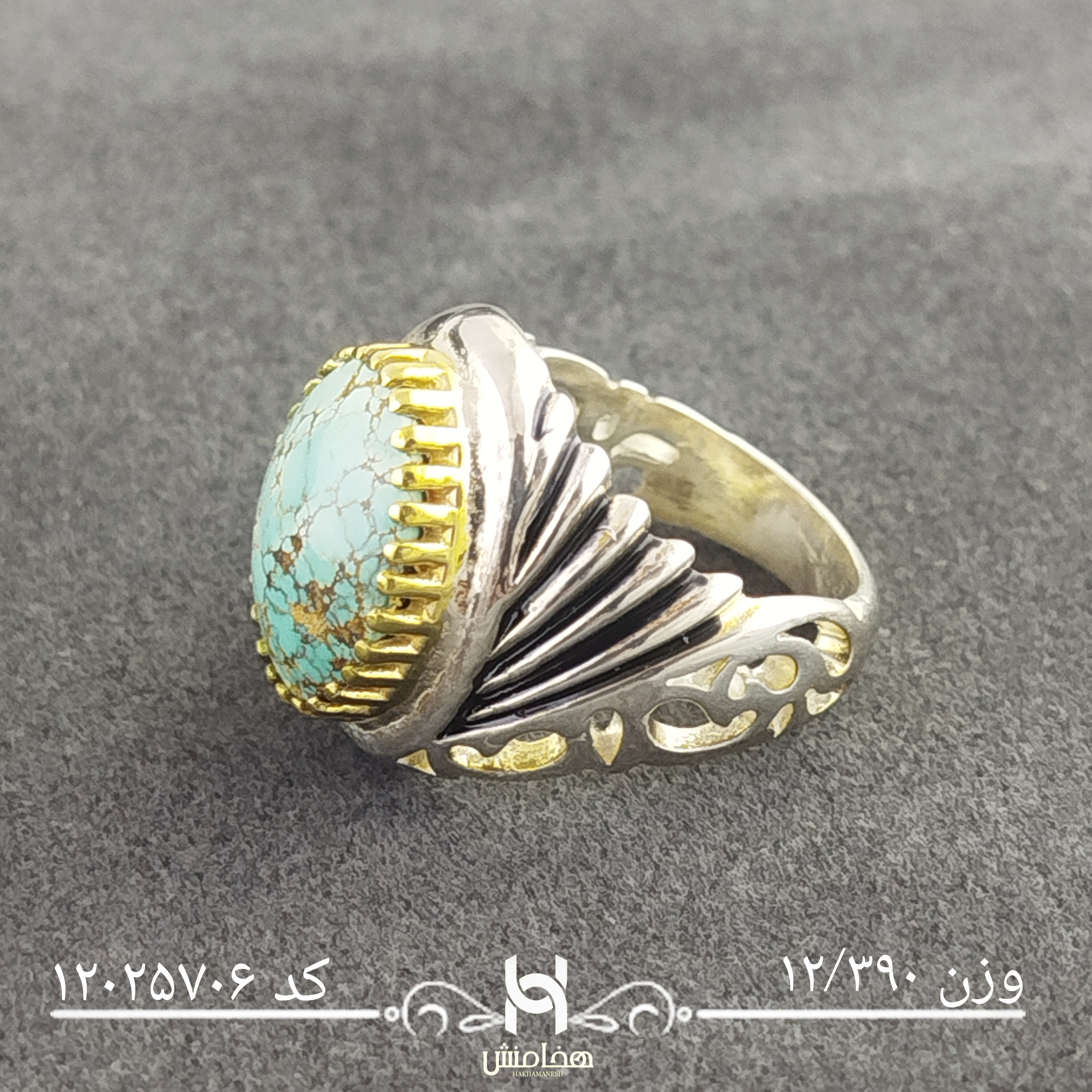 انگشتر نقره مردانه دورنگ فیروزه کد 12025706