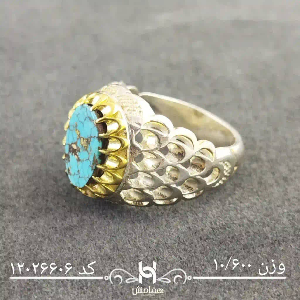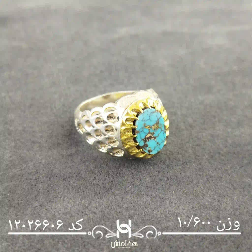 انگشتر نقره مردانه دورنگ فیروزه کد 12026606