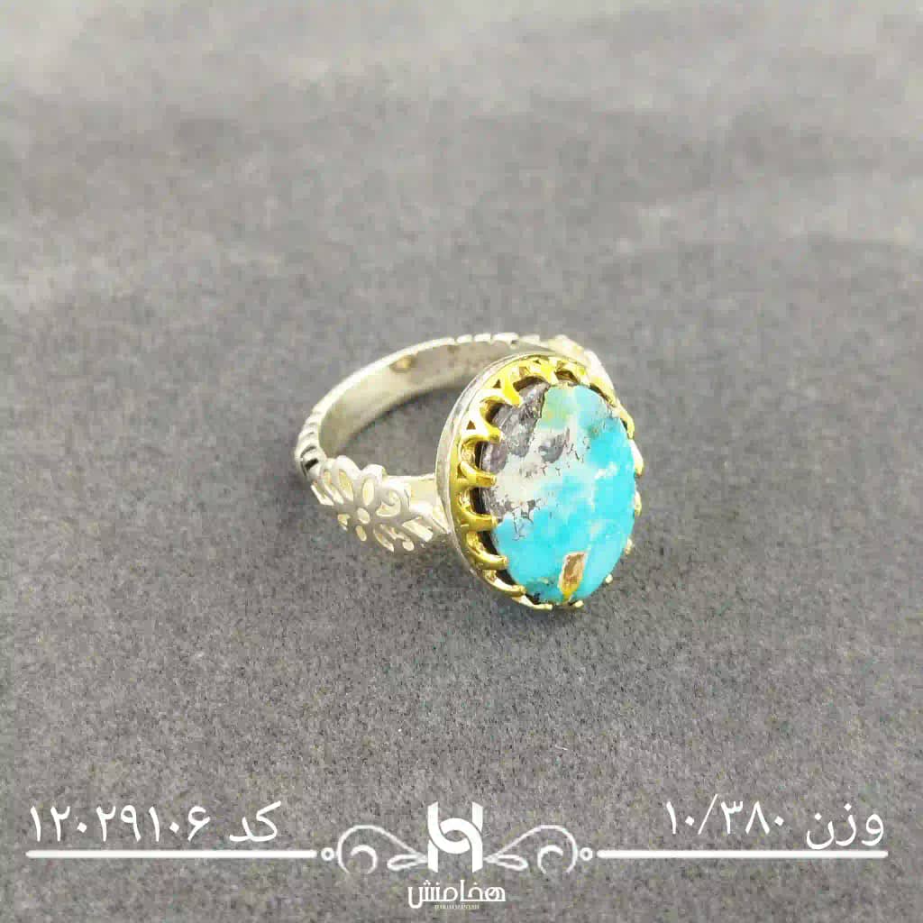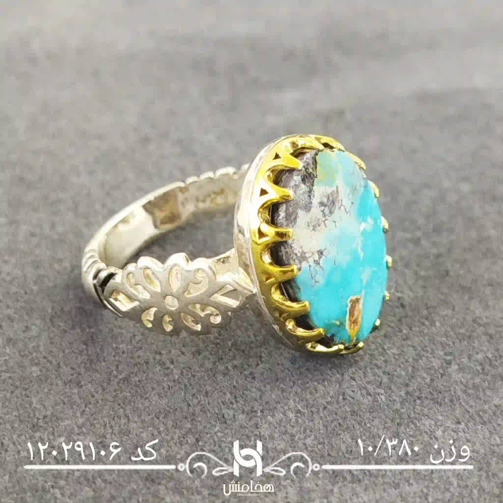 انگشتر نقره مردانه دورنگ فیروزه کد 12029106