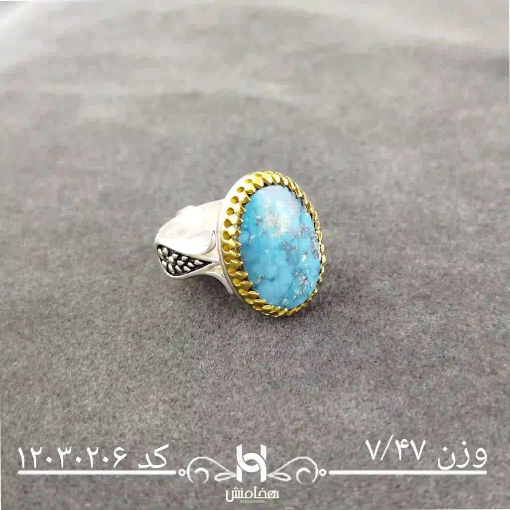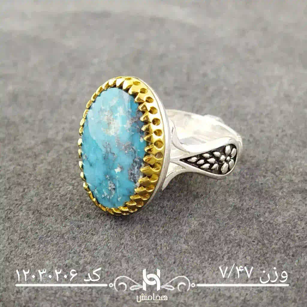 انگشتر نقره مردانه دورنگ فیروزه کد 12030206