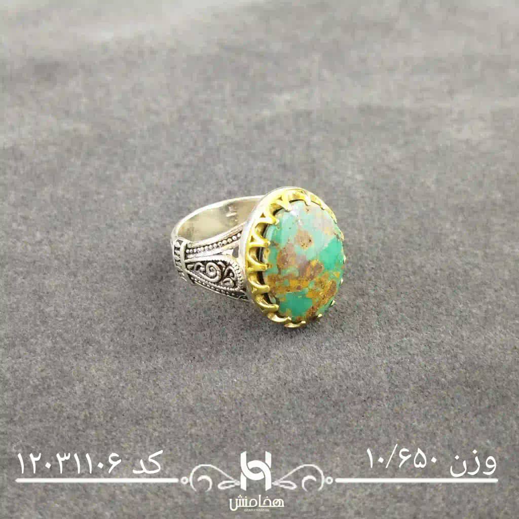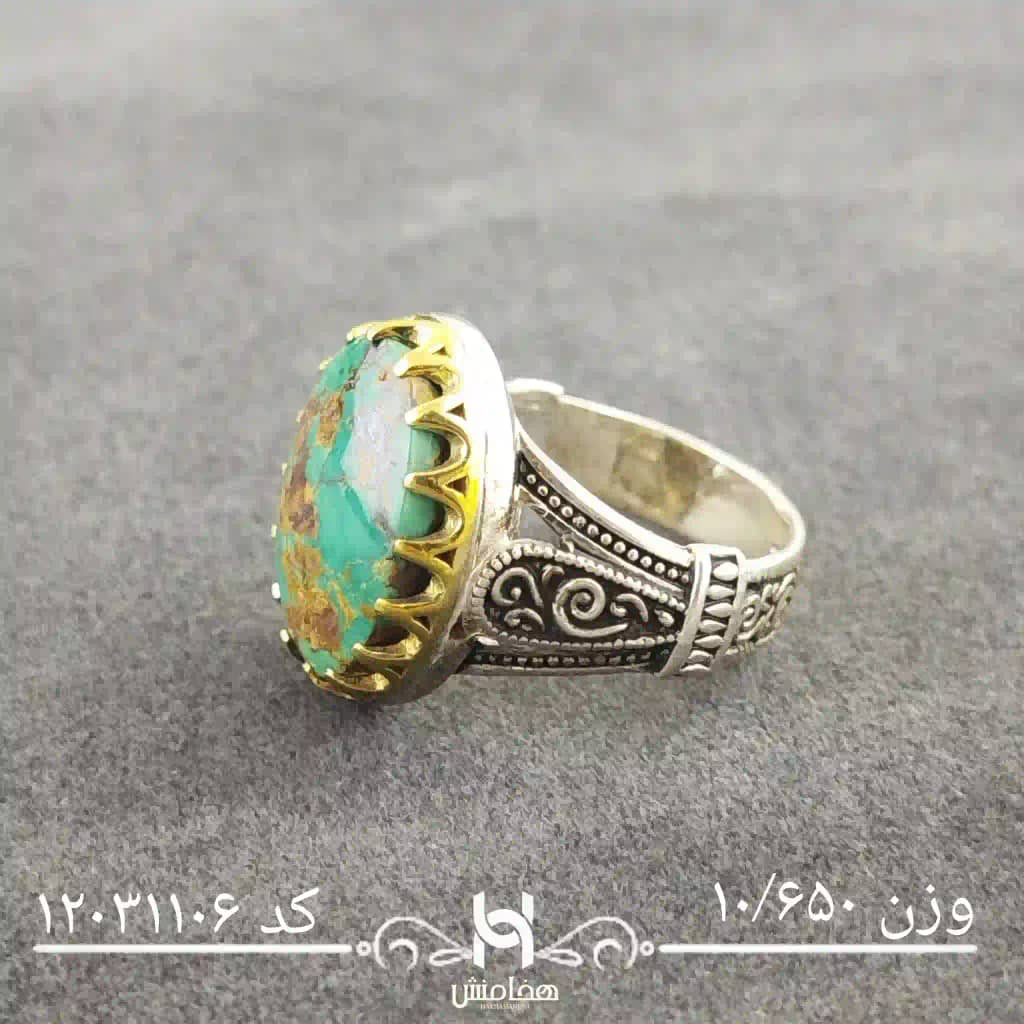 انگشتر نقره مردانه دورنگ فیروزه کد 12031106