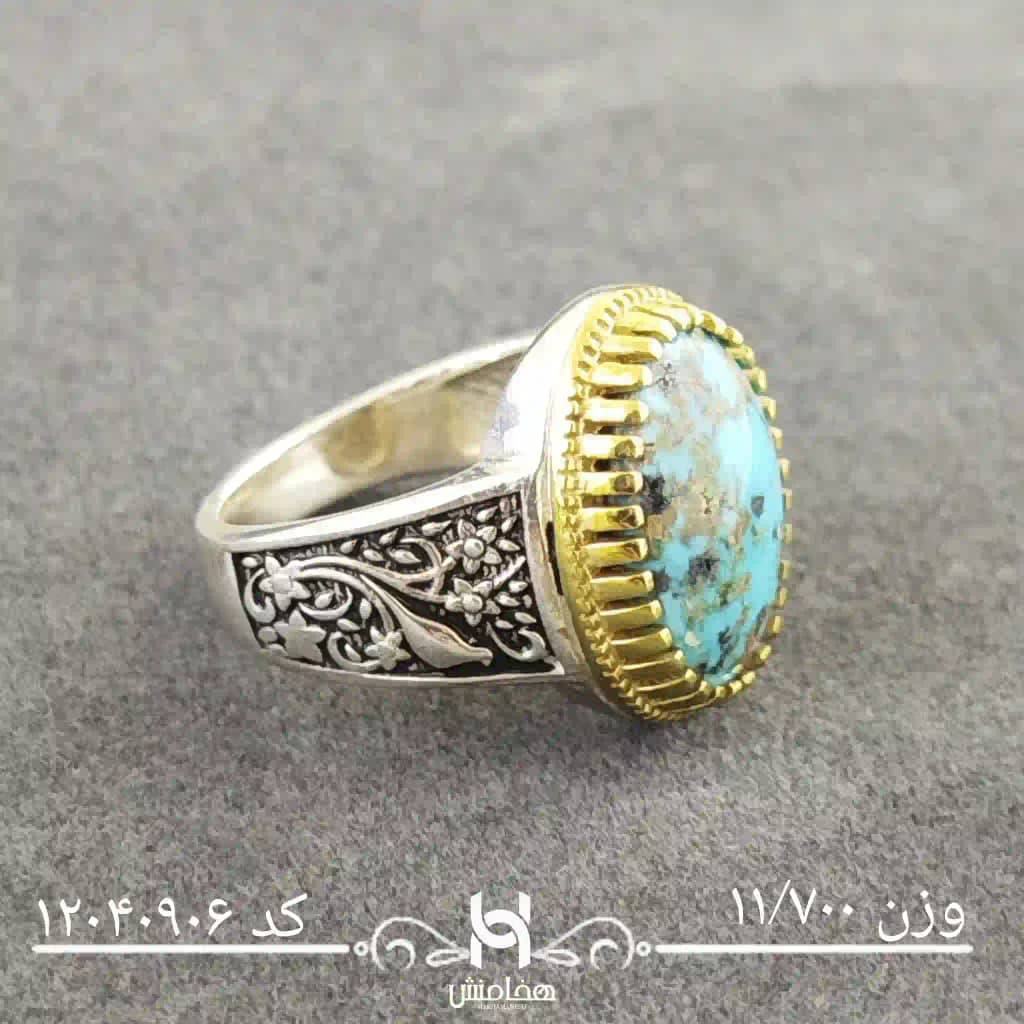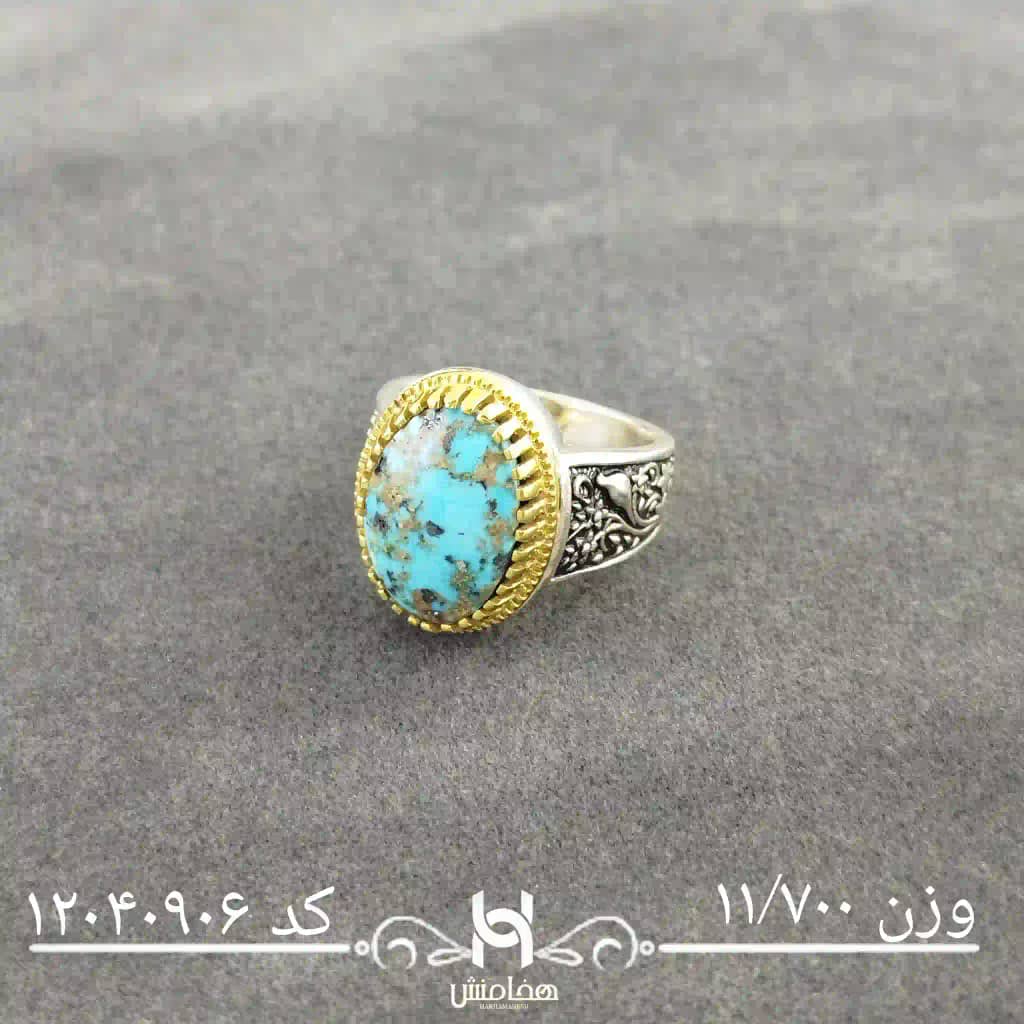 انگشتر نقره مردانه دورنگ فیروزه کد 12040906
