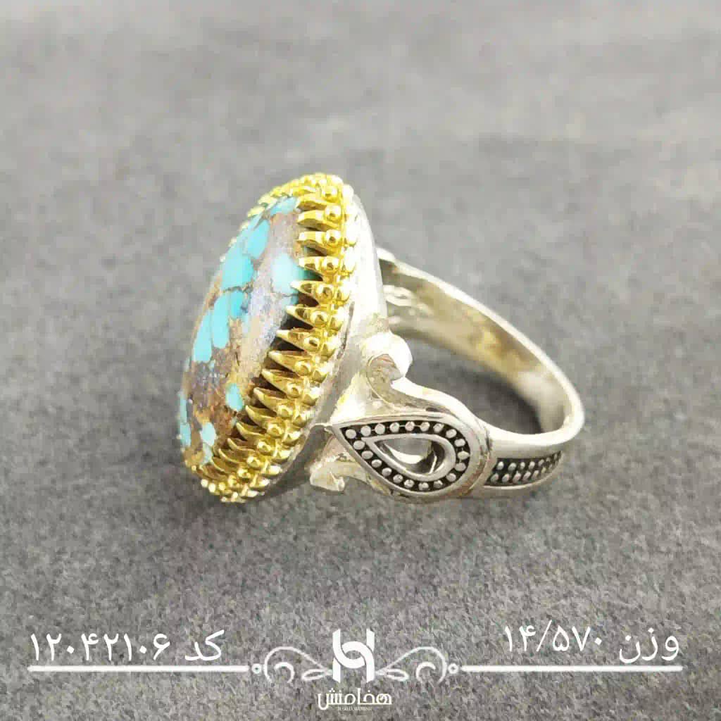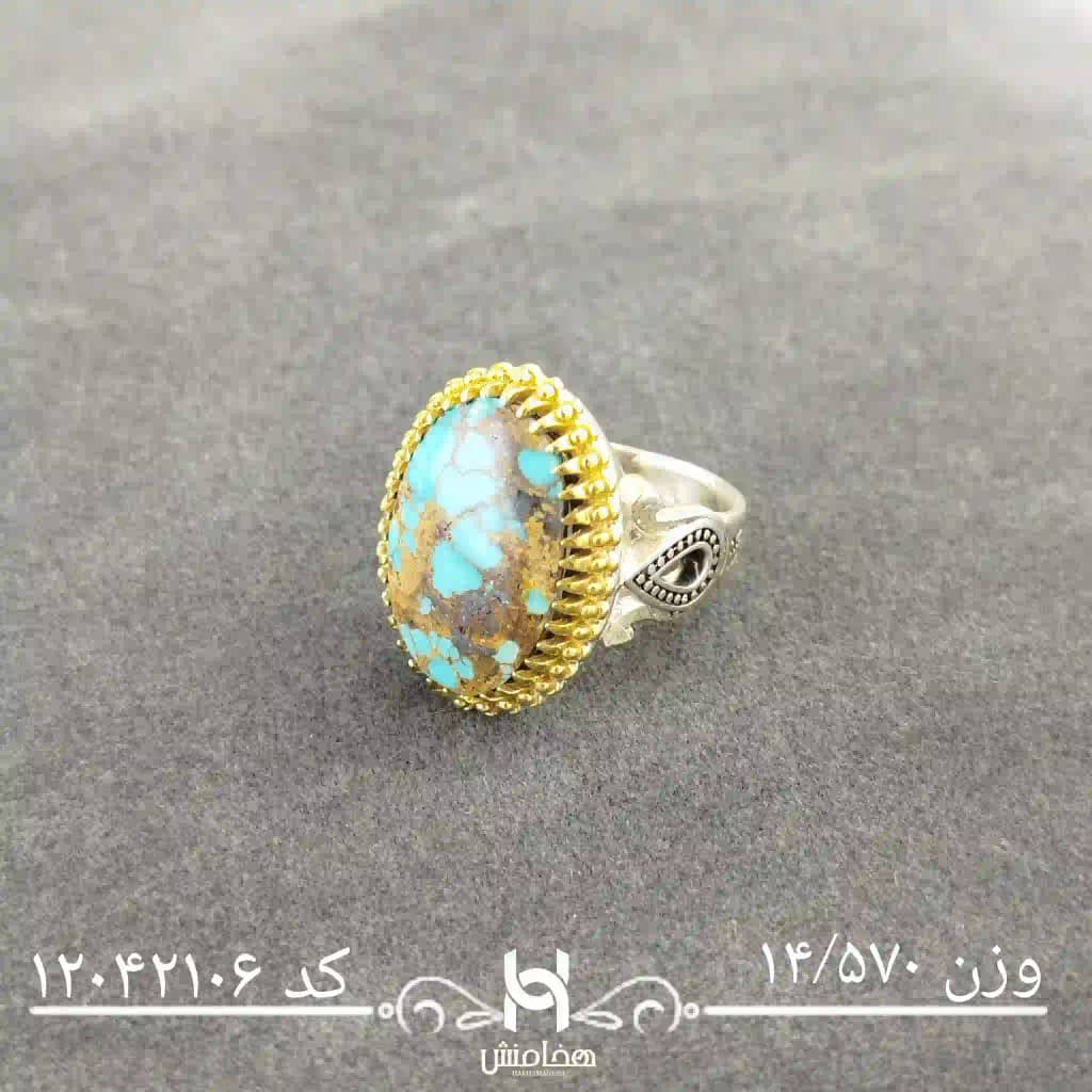 انگشتر نقره مردانه دورنگ فیروزه کد 12042106
