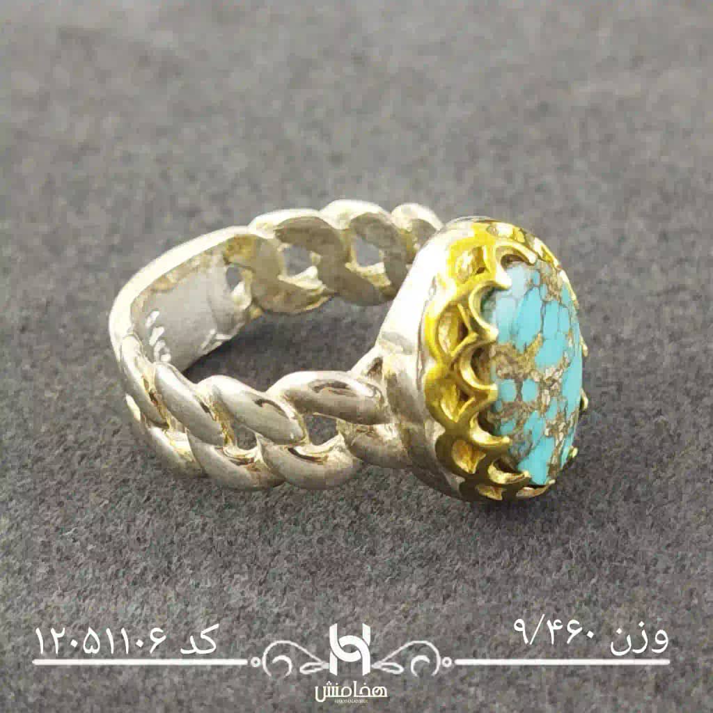 انگشتر نقره مردانه دورنگ فیروزه کد 12051106