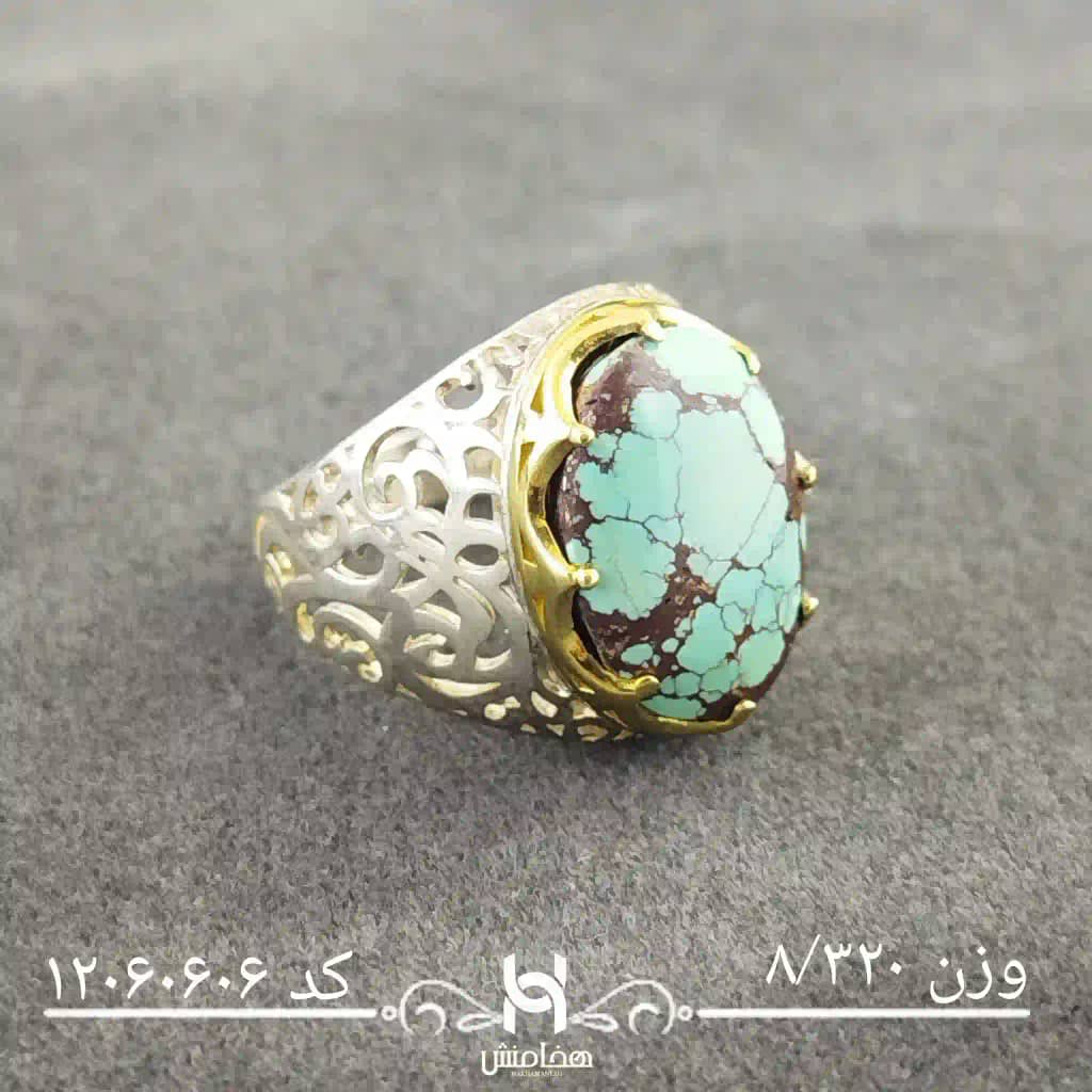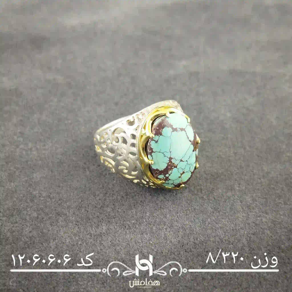 انگشتر نقره مردانه دورنگ فیروزه کد 12060606