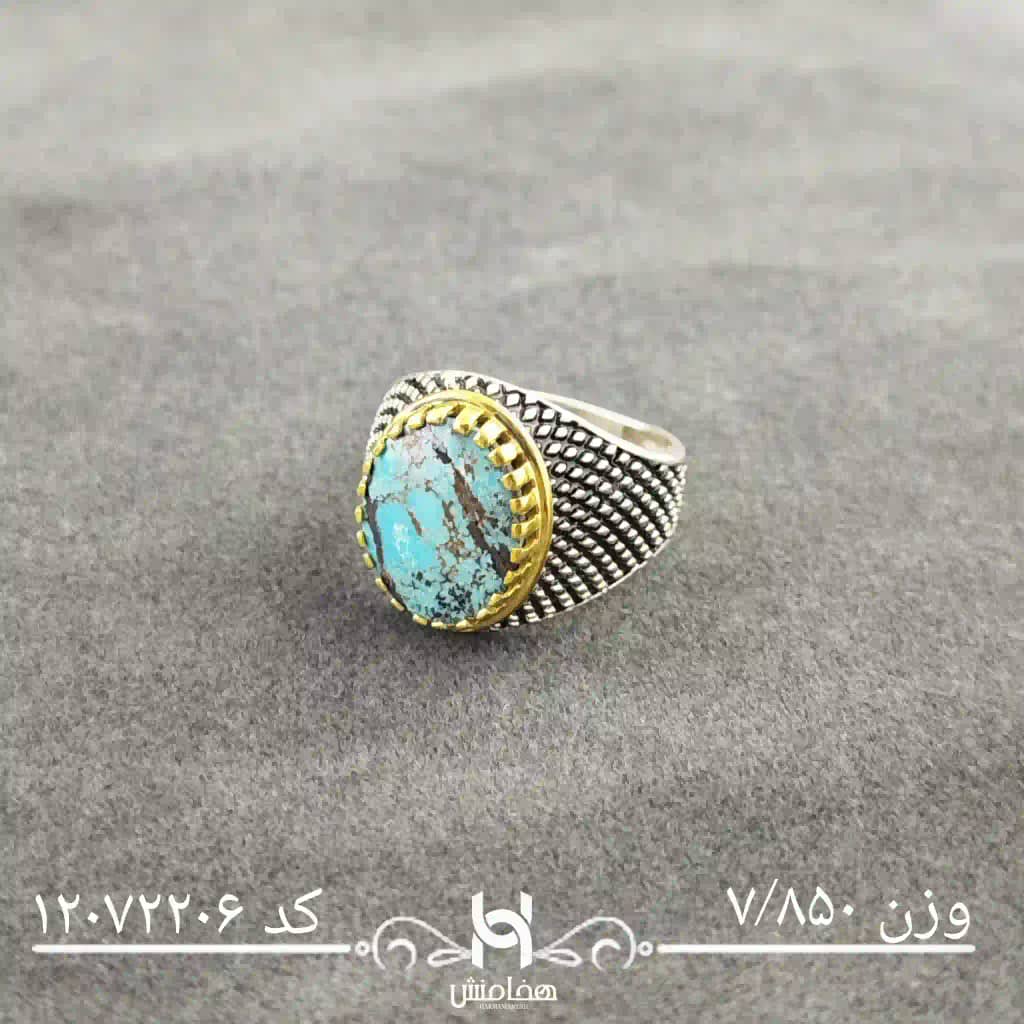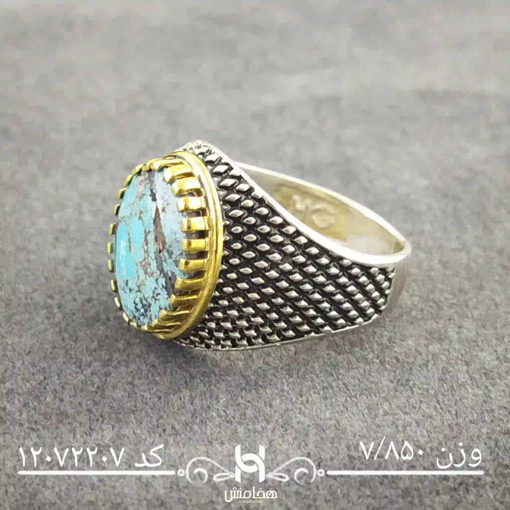 انگشتر نقره مردانه دورنگ فیروزه کد 12072206