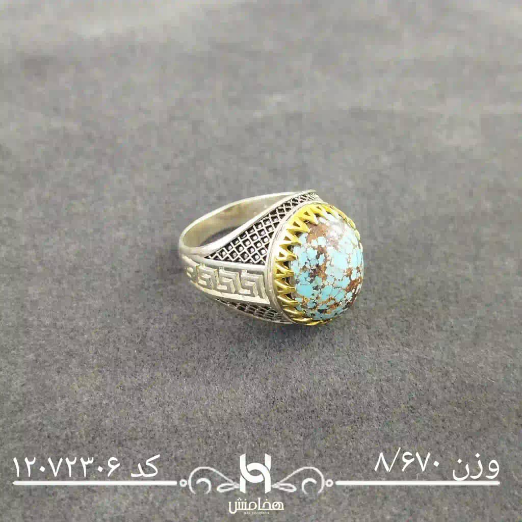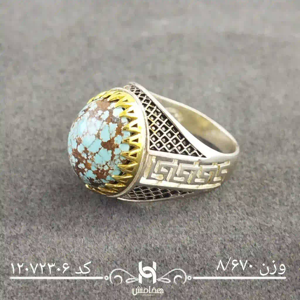 انگشتر نقره مردانه دورنگ فیروزه کد 12072306