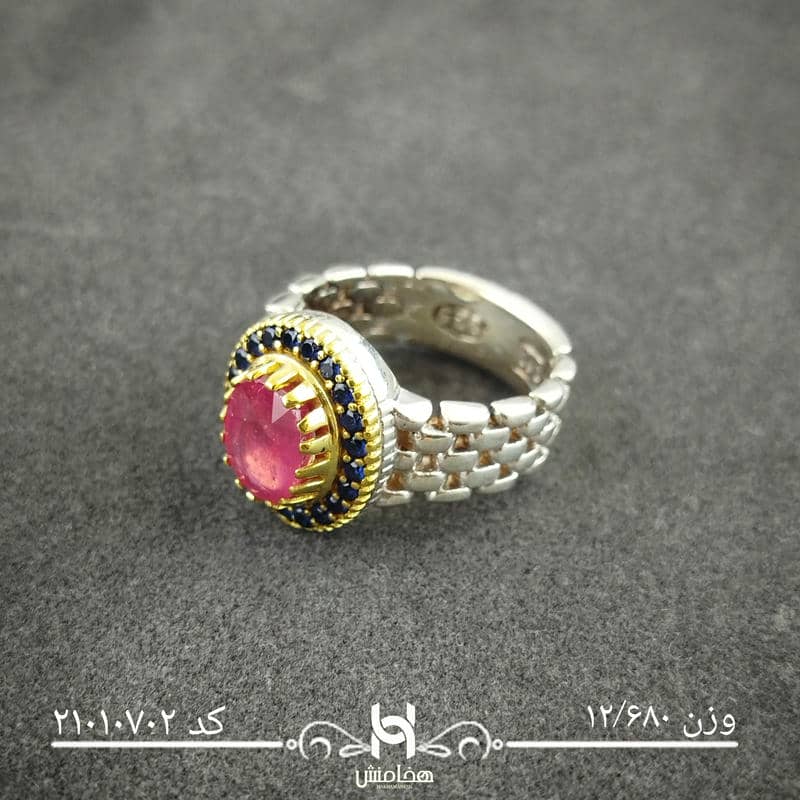 انگشتر نقره مردانه دورنگ یاقوت سرخ کد 21010702