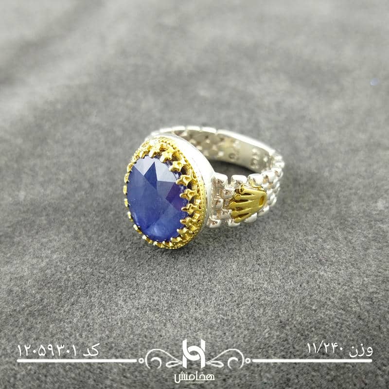انگشتر نقره مردانه دورنگ یاقوت کبود کد 12059301