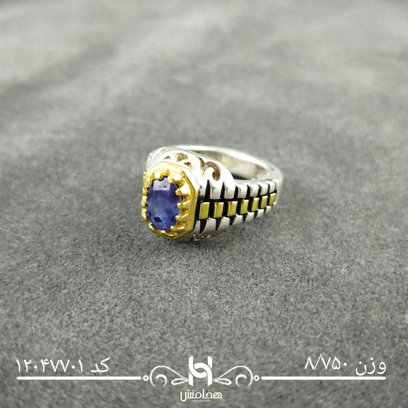 انگشتر نقره مردانه دورنگ یاقوت کبود کد 12047701