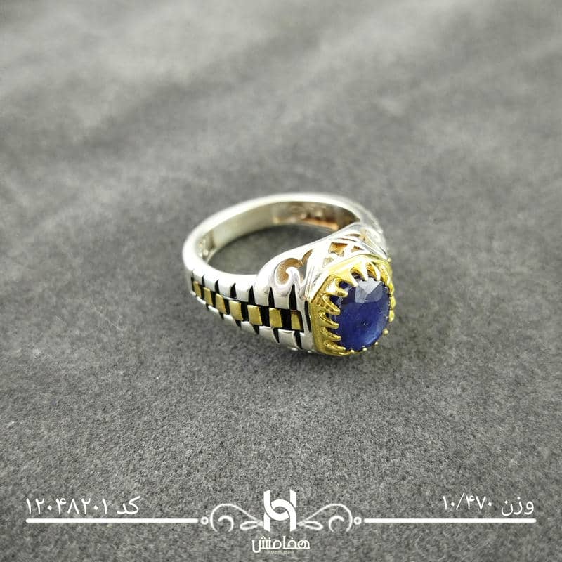 انگشتر نقره مردانه دورنگ یاقوت کبود کد12048201