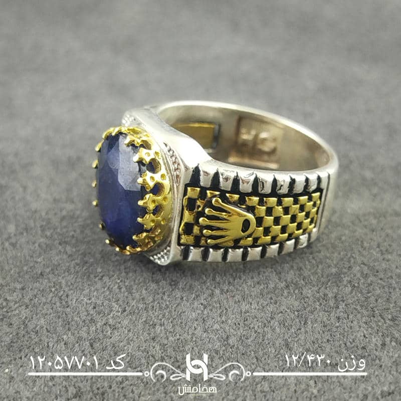 انگشتر نقره مردانه دورنگ یاقوت کبود کد12057701