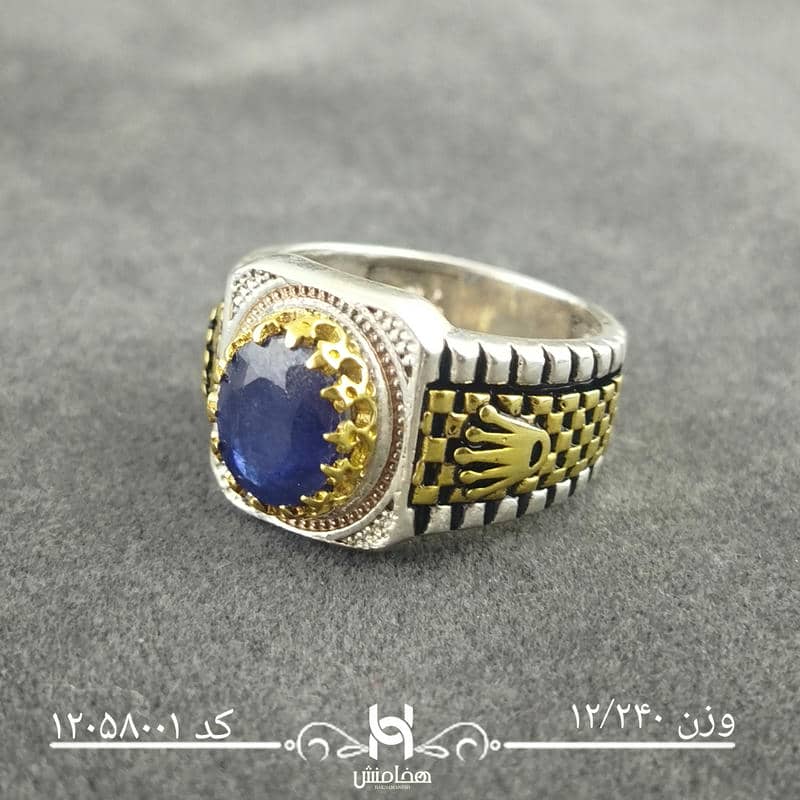 انگشتر نقره مردانه دورنگ یاقوت کبود کد12058001