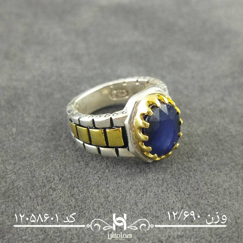 انگشتر نقره مردانه دورنگ یاقوت کبود کد12058601