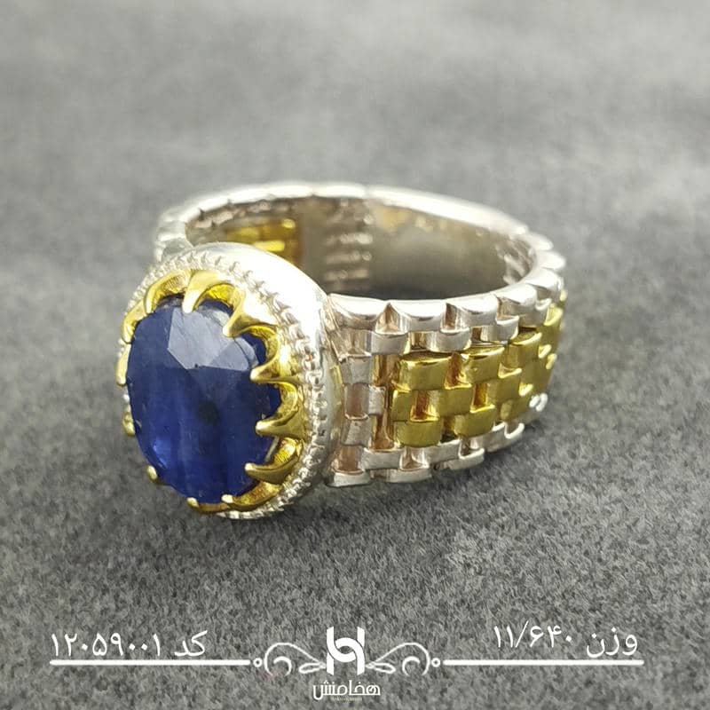 انگشتر نقره مردانه دورنگ یاقوت کبود کد12059001