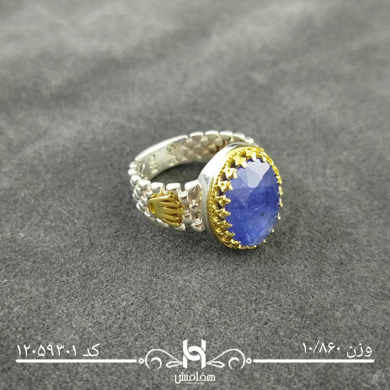 انگشتر نقره مردانه دورنگ یاقوت کبود کد12059301