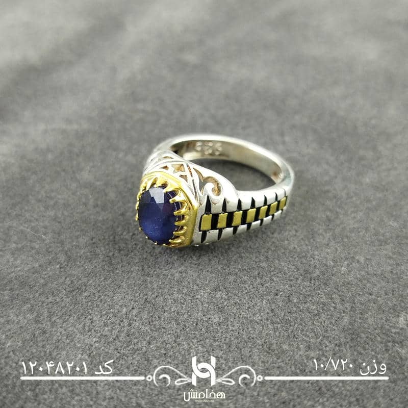 انگشتر نقره مردانه دورنگ یاقوت کبود کد12048201