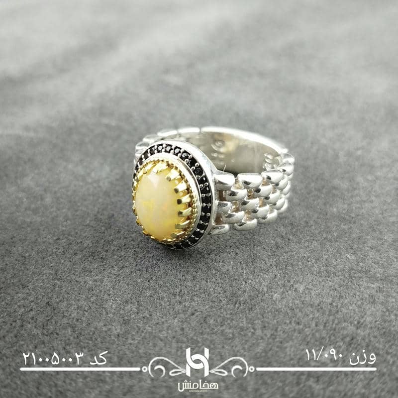 انگشتر نقره مردانه رويال دورنگ اوپال سفيد کد 21005003