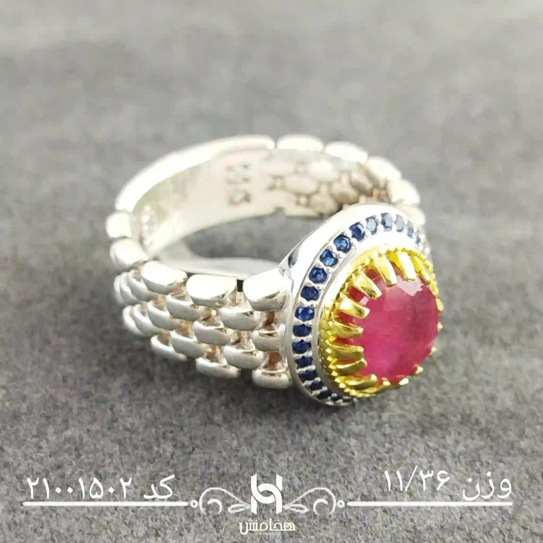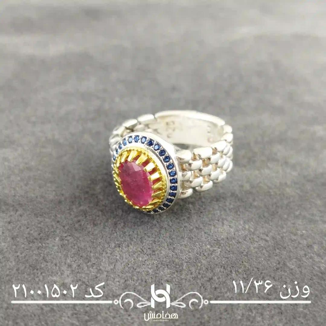 انگشتر نقره مردانه رویال دورنگ یاقوت سرخ کد 21001302