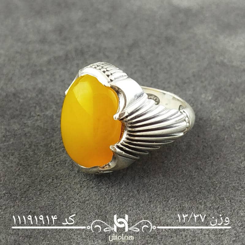 انگشتر نقره مردانه عقیق زرد با سنگ طبیعی اصل و نقره عیار استاندارد 925 تولید شرکت هخامنش میباشد.