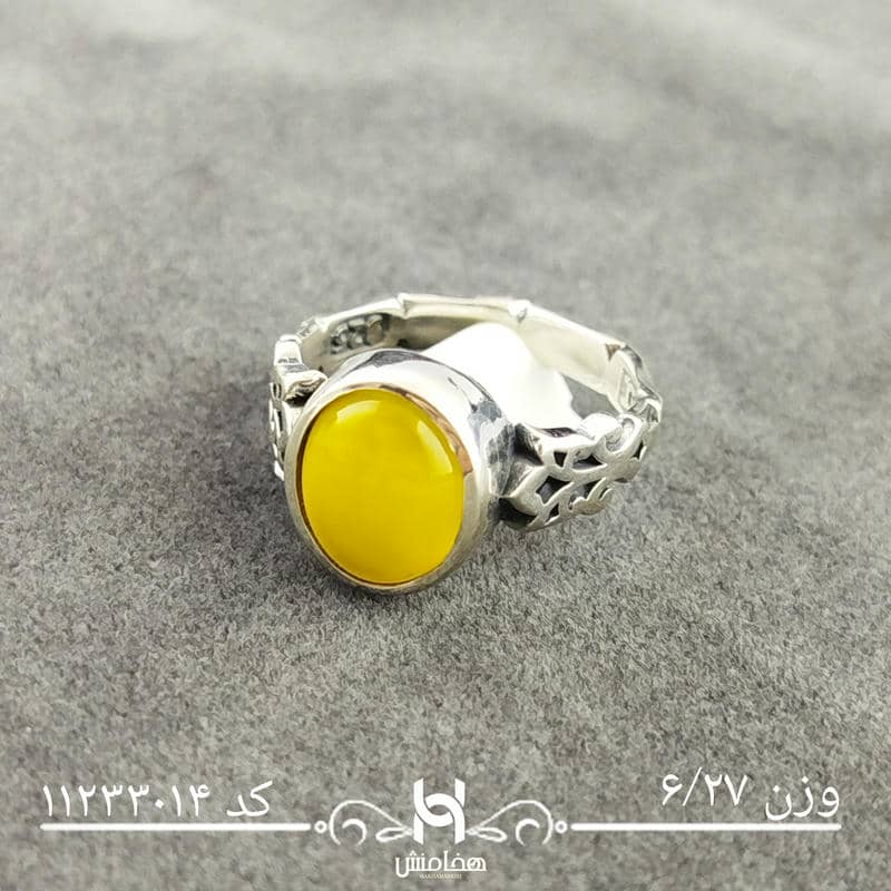 انگشتر نقره مردانه عقیق زرد با سنگ طبیعی اصل و نقره عیار استاندارد 925 تولید شرکت هخامنش میباشد.