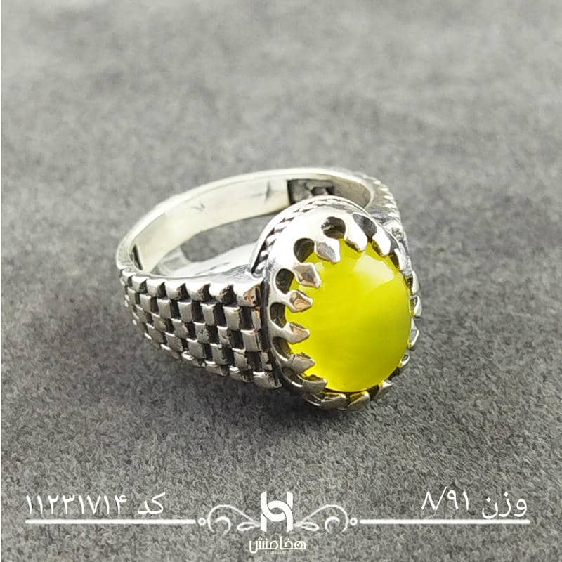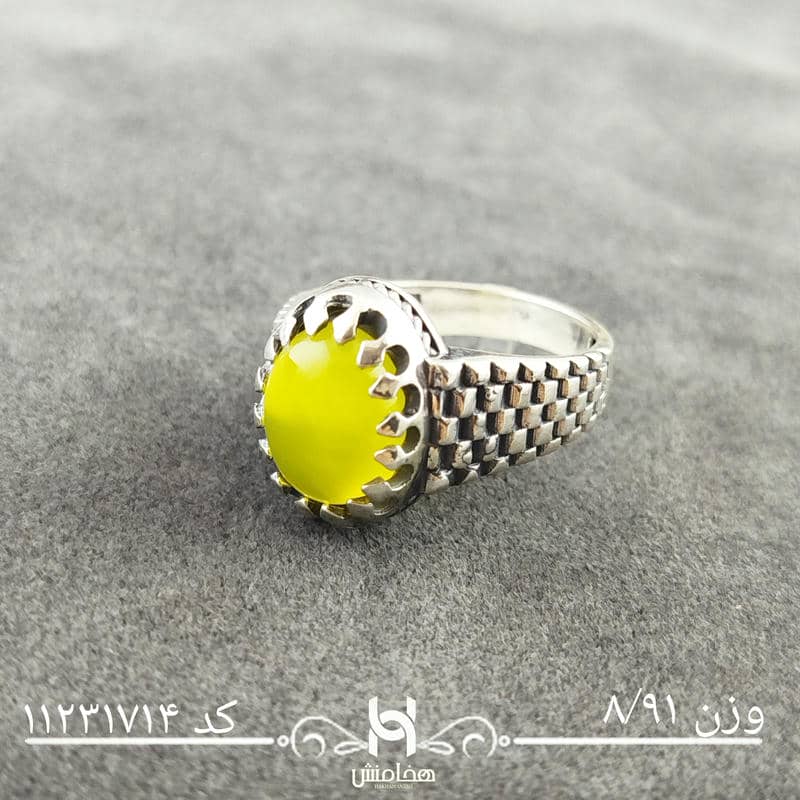 انگشتر نقره مردانه عقیق زرد با سنگ طبیعی اصل و نقره عیار استاندارد 925 تولید شرکت هخامنش میباشد.